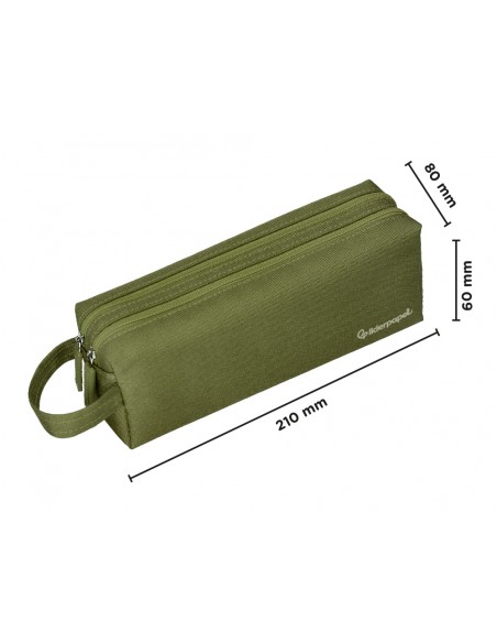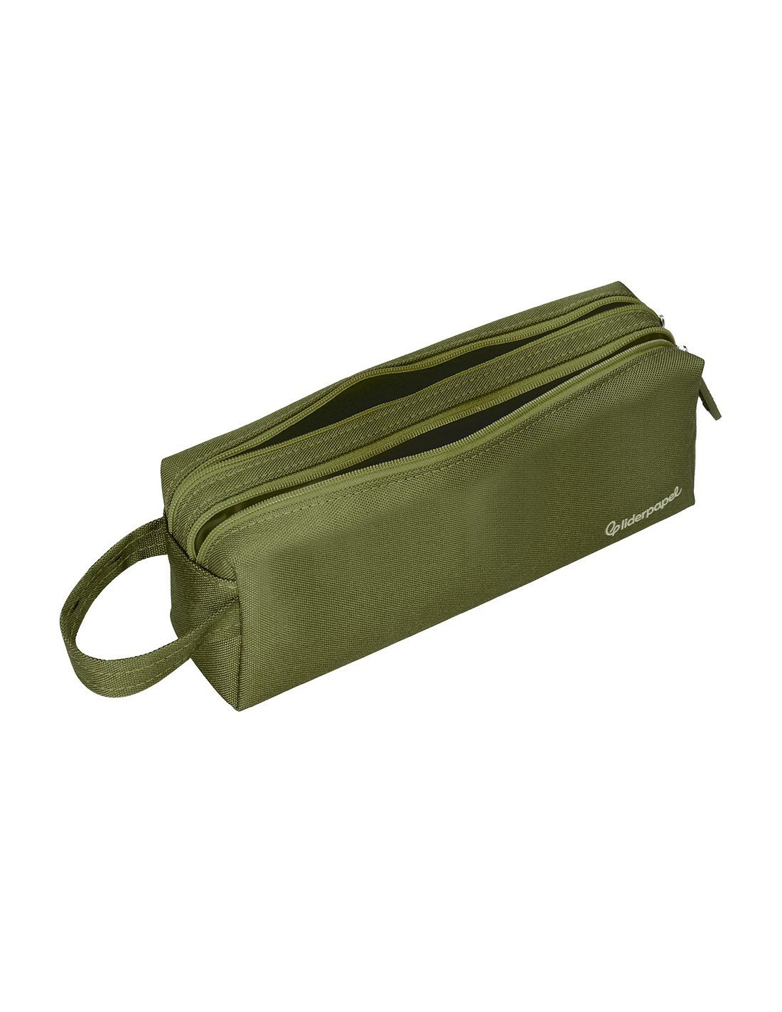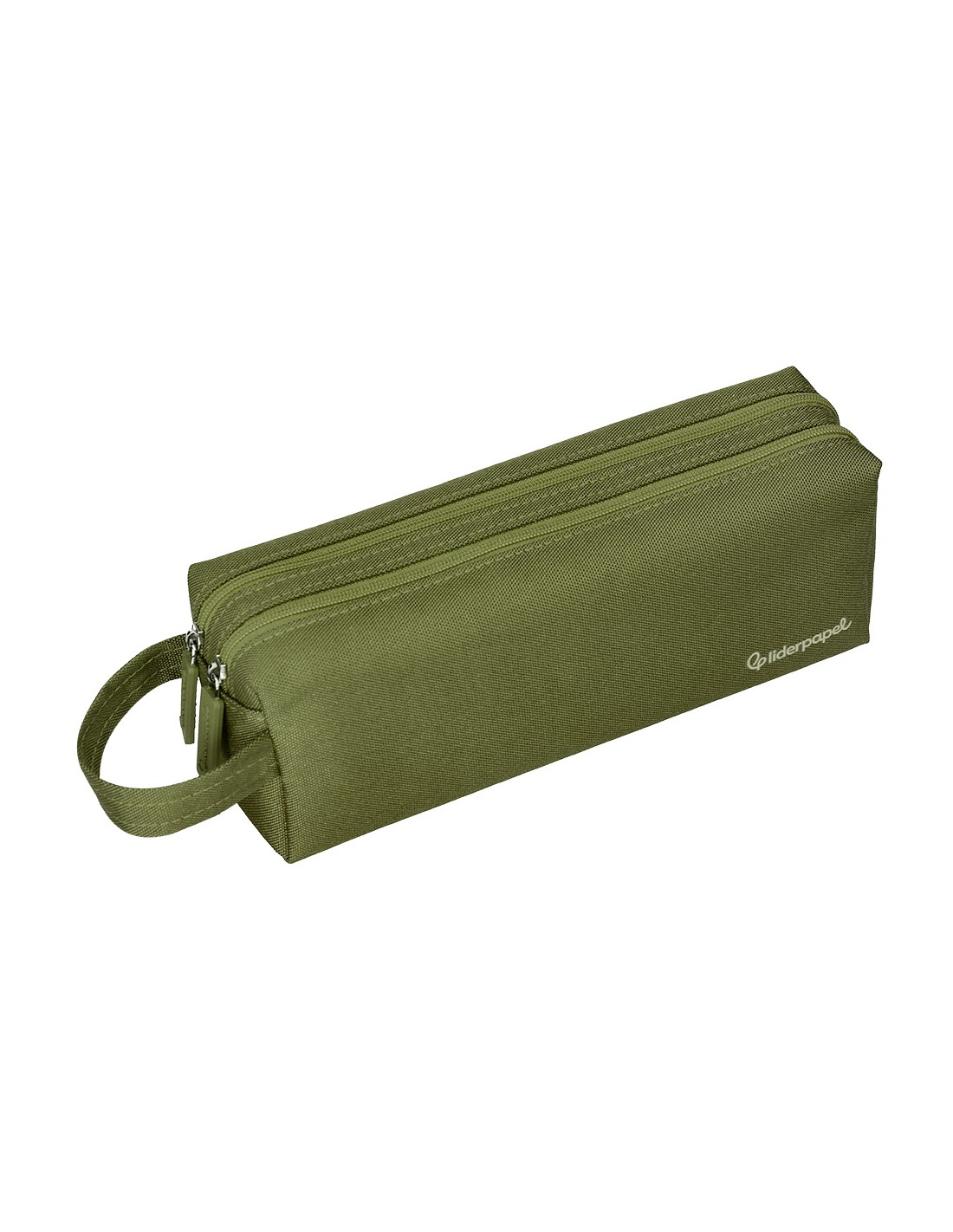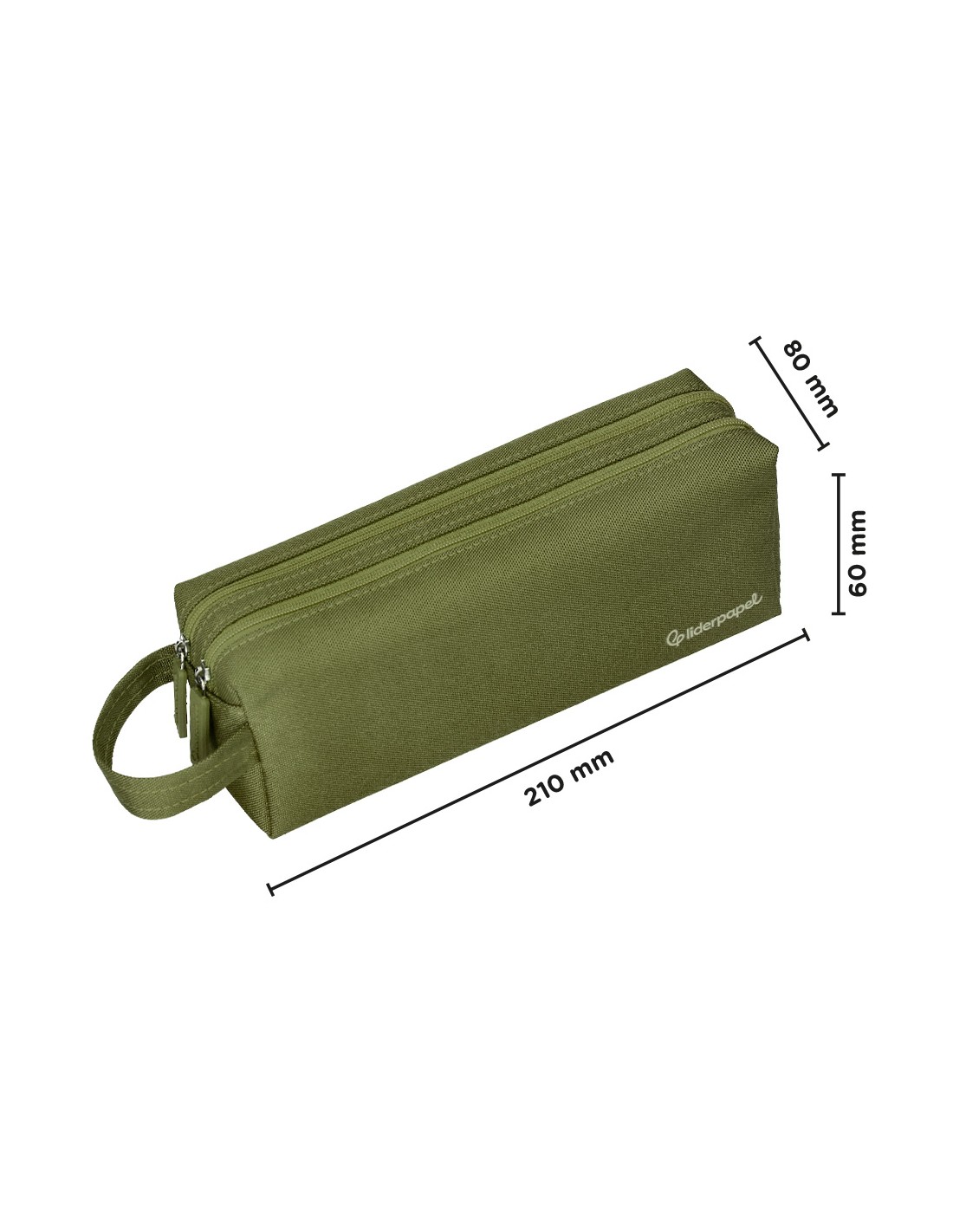 Estuche portatodo liderpapel classic rectangular con asa 2 cremalleras 210 x80mm verde militar