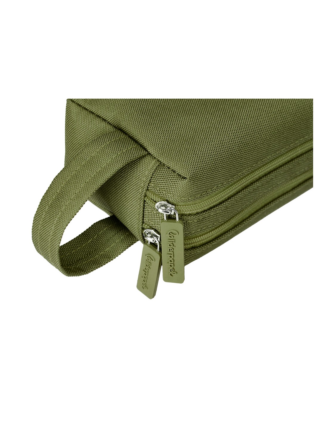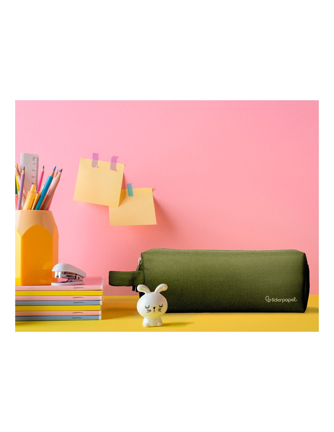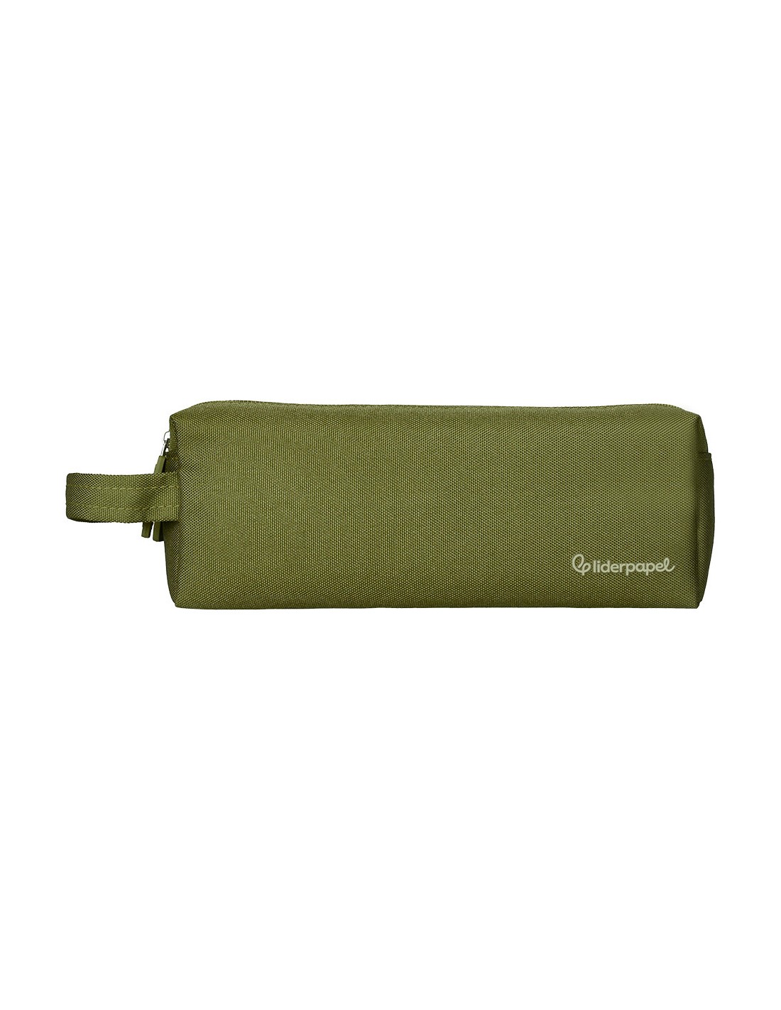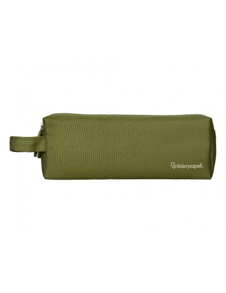 Estuche portatodo liderpapel classic rectangular con asa 2 cremalleras 210 x80mm verde militar