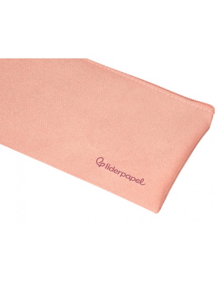 Estuche portatodo liderpapel plano ancho una cremallera 200x100 mm rosa