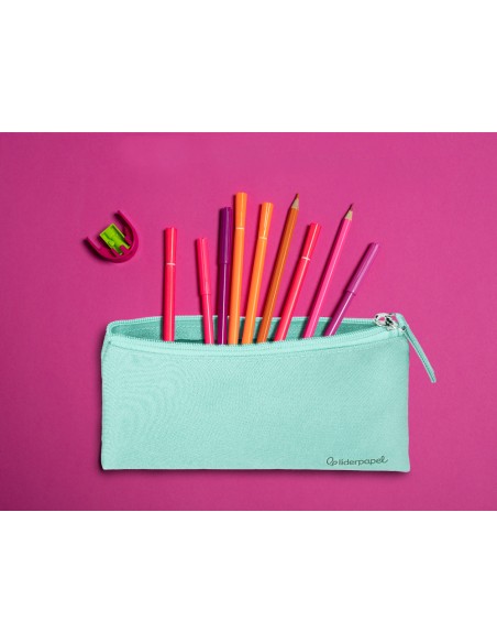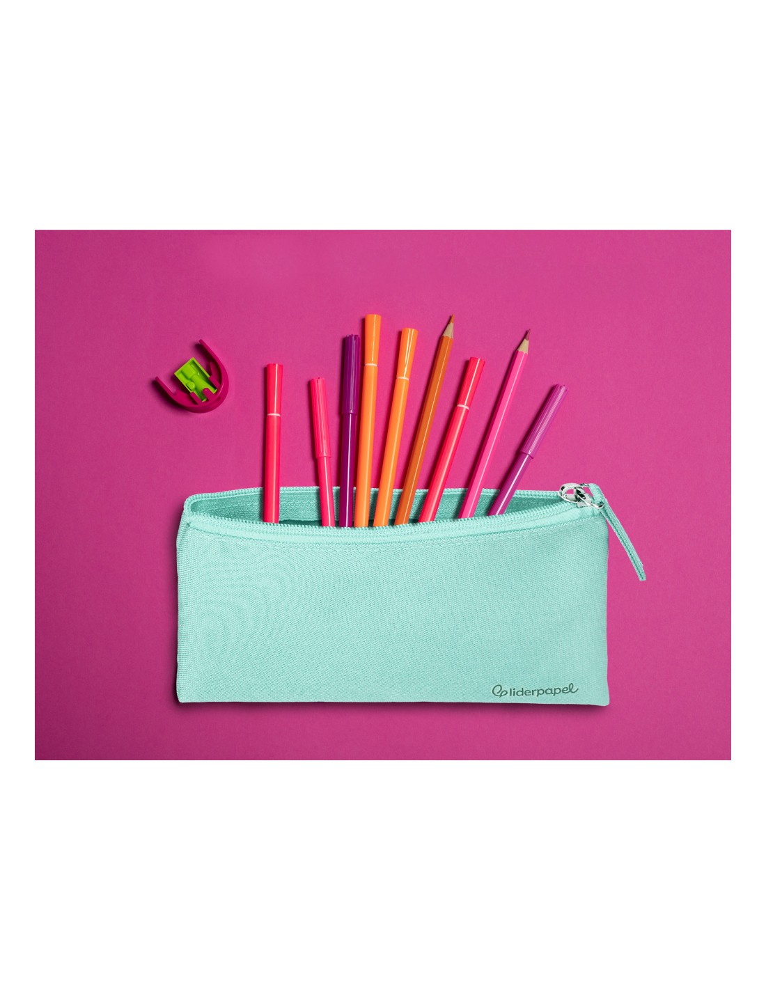 Estuche portatodo liderpapel plano ancho una cremallera 200x100 mm verde manzana