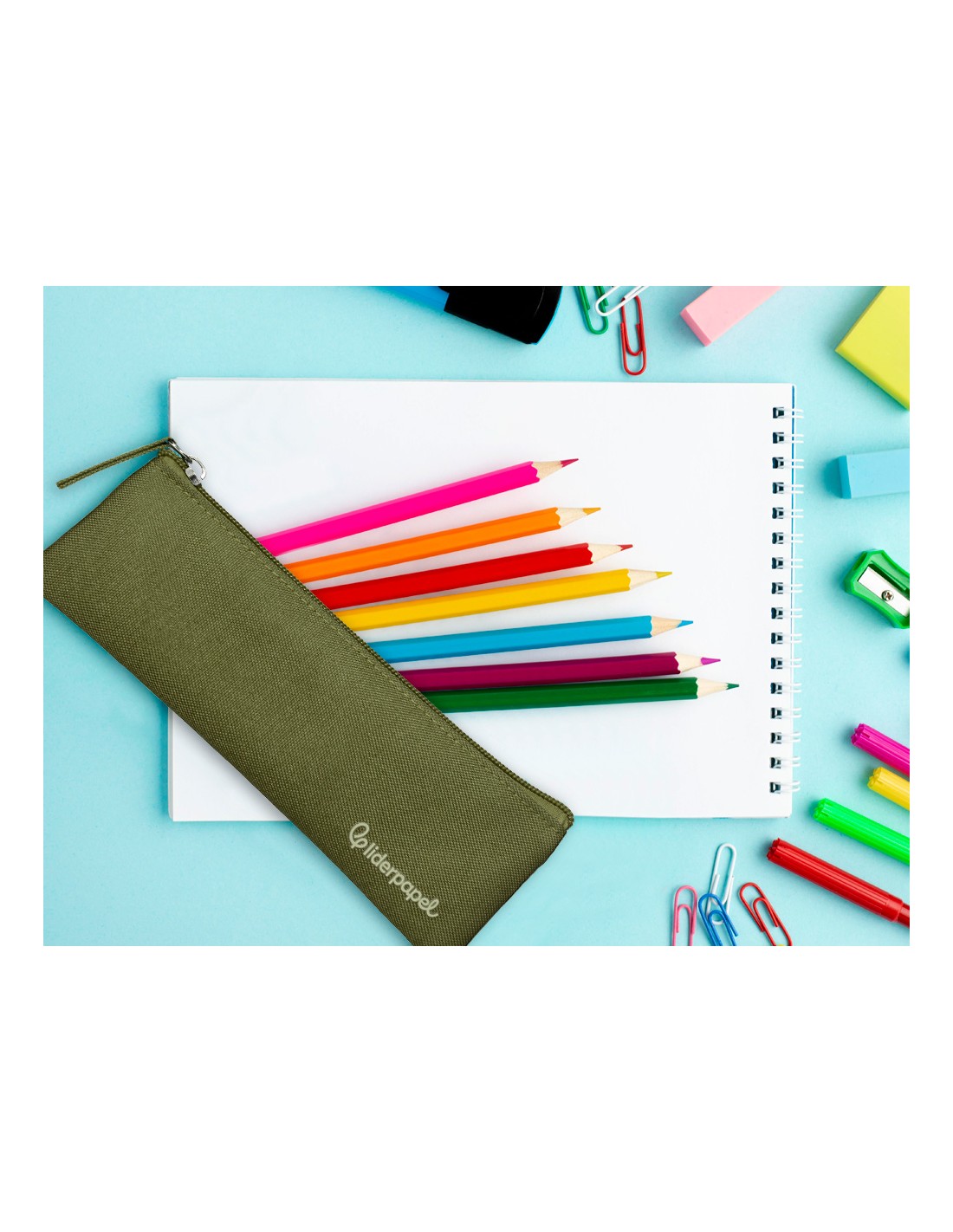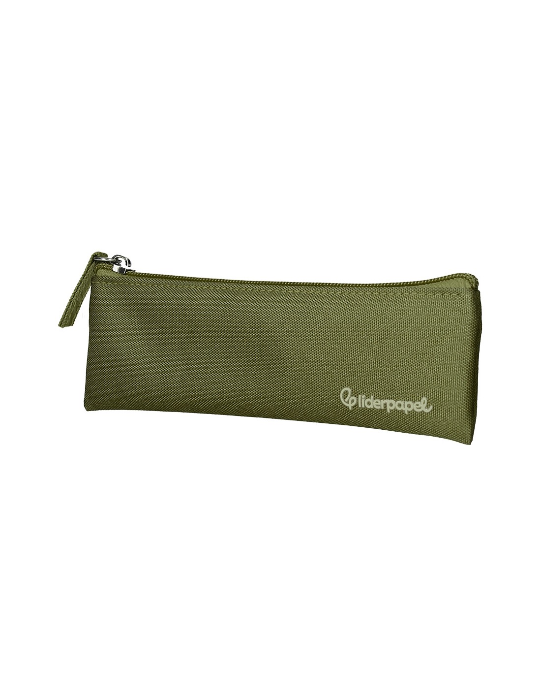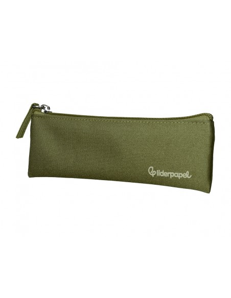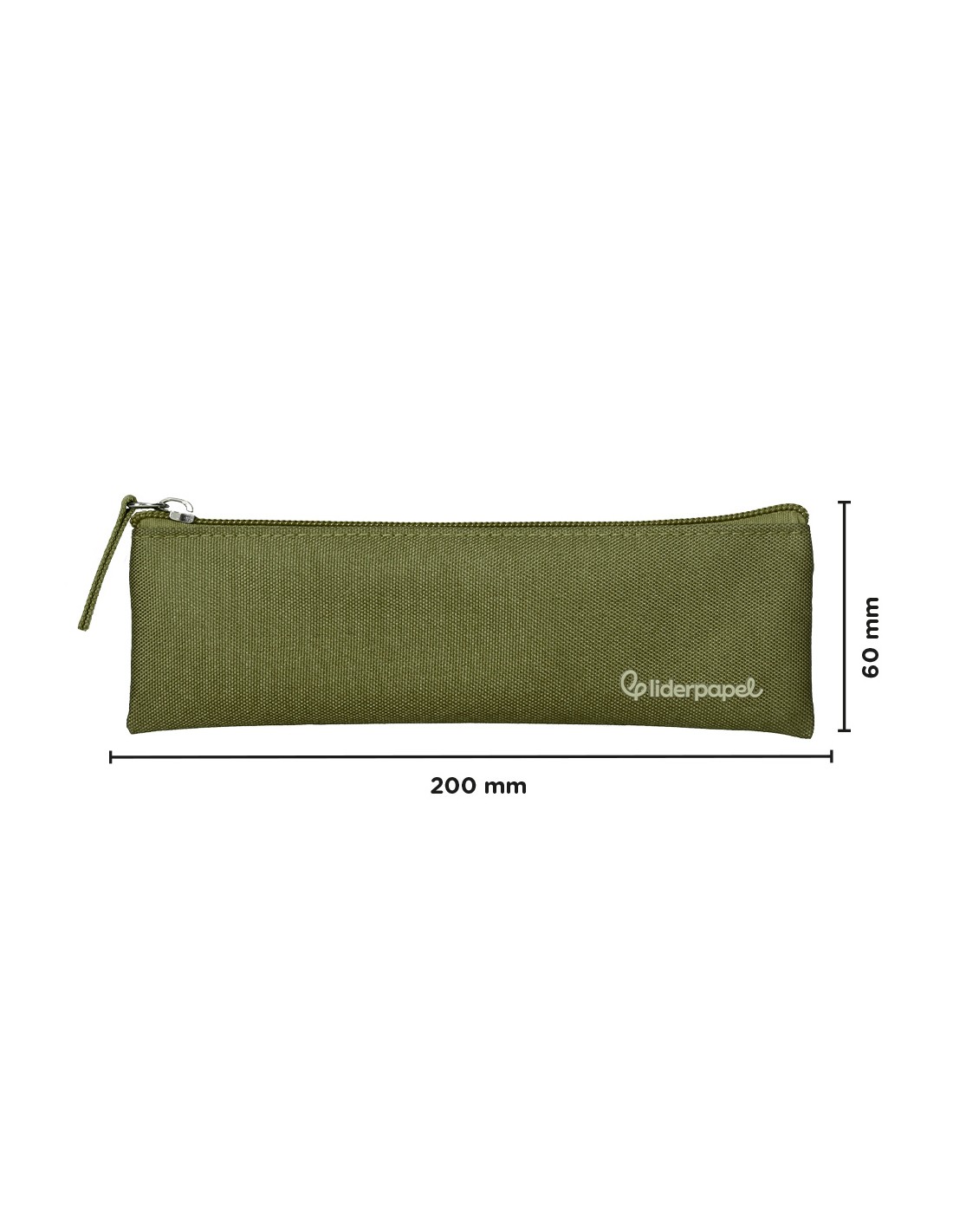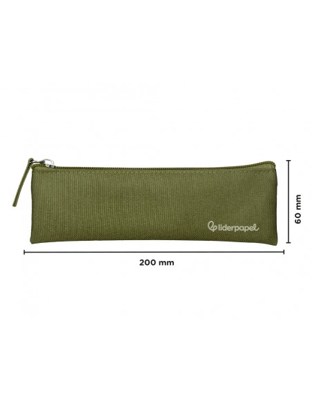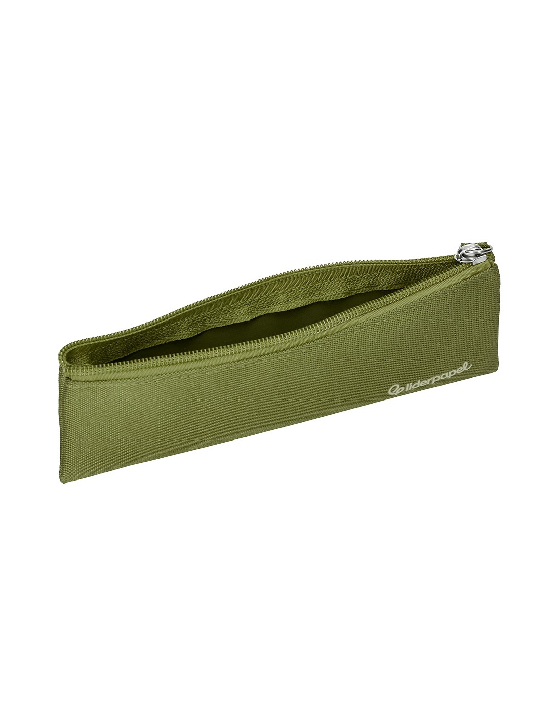 Estuche portatodo liderpapel plano estrecho una cremallera 200x60 mm verde militar
