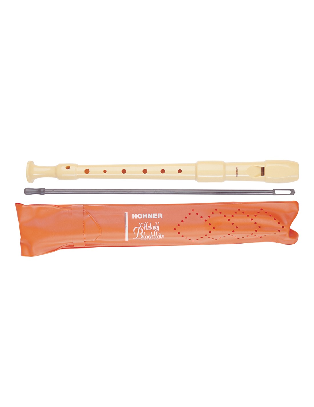 Flauta dulce color marfil, serie Melody, de dos piezas. Especialmente adecuada para formación básica musical para los jardines de infancia, agradable de tocar. Se limpia fácilmente. Soprano do, sintética, con varilla de limpieza y hoja de instrucciones. Con funda naranja.