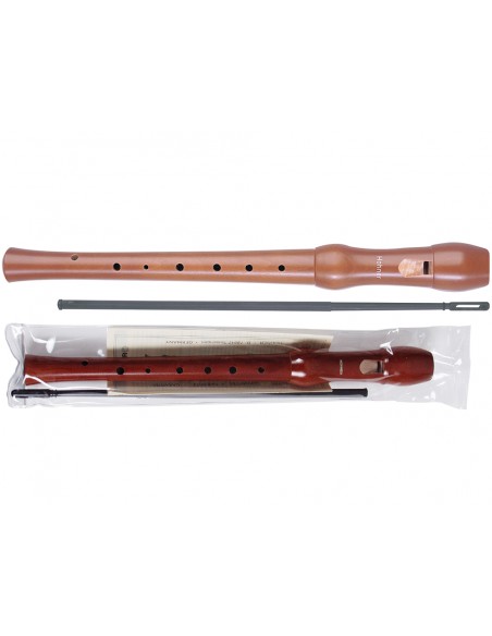 Flauta dulce de madera, serie Música, de dos piezas, especialmente adecuada para la formación básica musical. Se limpia fácilmente. Fabricada en madera de peral barnizada oscura, con tacto muy suave. Incluye varilla plástica para su limpieza. Funda plástica transparente.