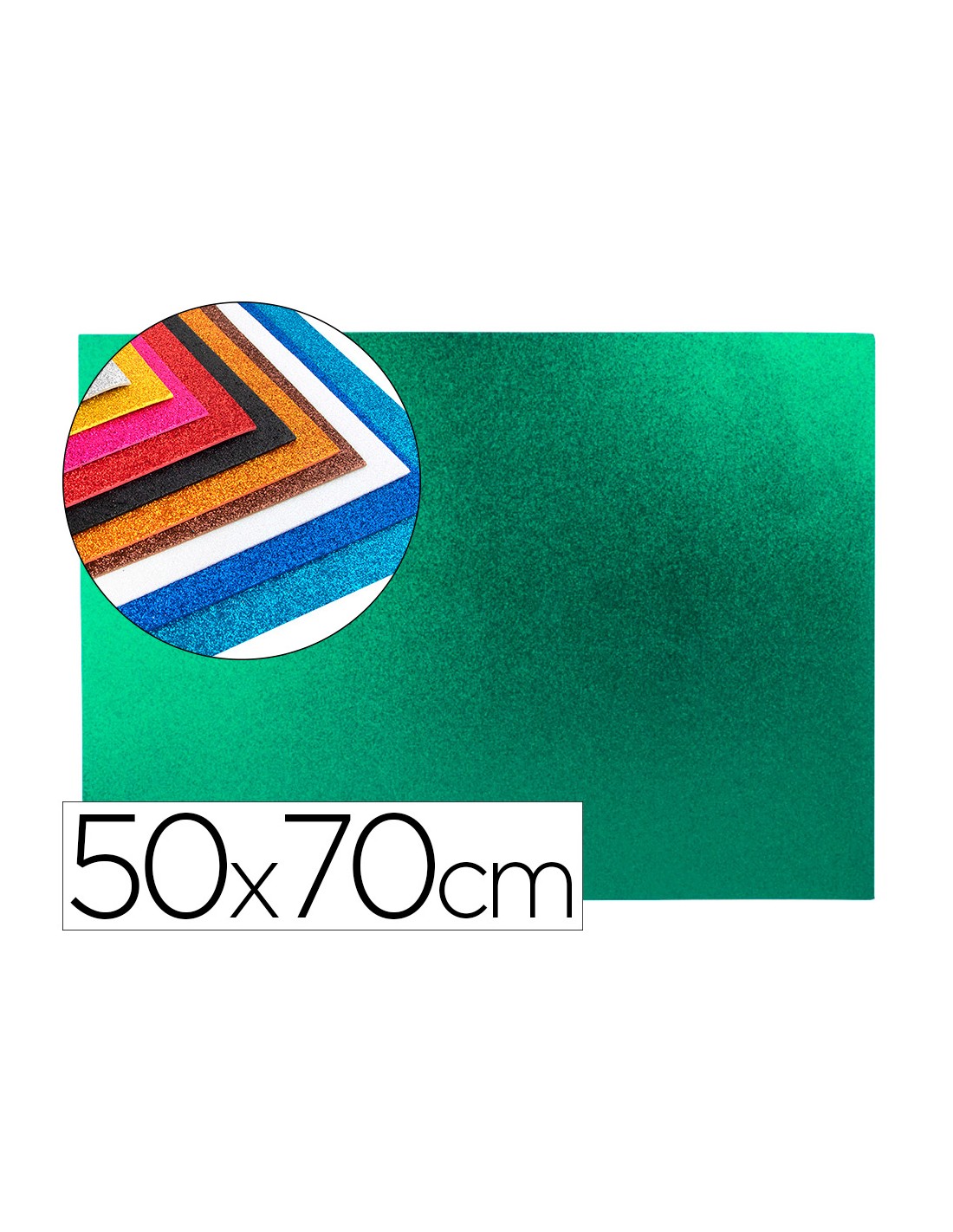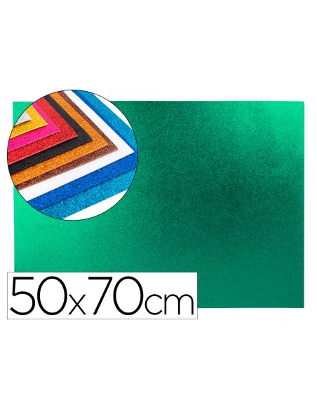 Goma eva con purpurina biodegradable liderpapel 50x70cm 60g/m2 espesor 2 mm verde
