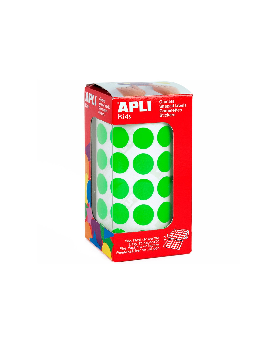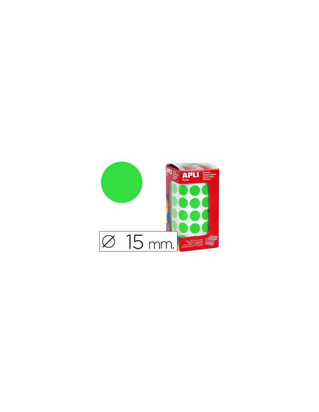 Gomets autoadhesivos circulares 15 mm verde en rollo con 2832 unidades