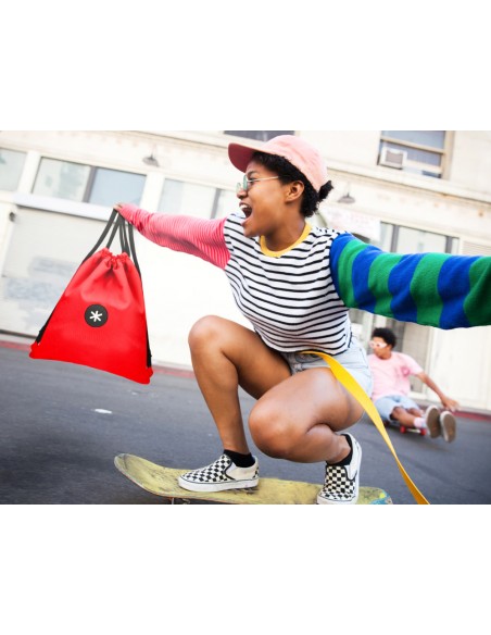 Saco plano ajustable con cierre de cordones. Bolsillo interior con cremallera. Su tamaño ajustable permite llevarla colgada a la espalda como una mochila o al hombro. Ideal para niños o adultos y perfecta para el entrenamiento, ocio o viajes. Medidas 350 x 400 mm.