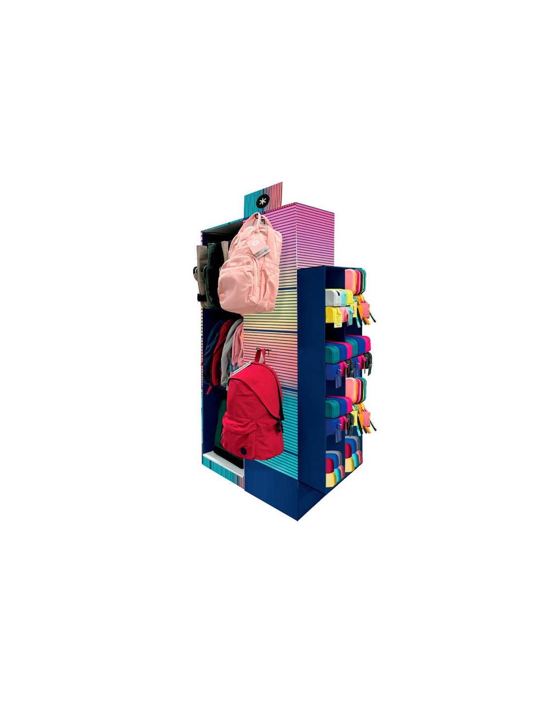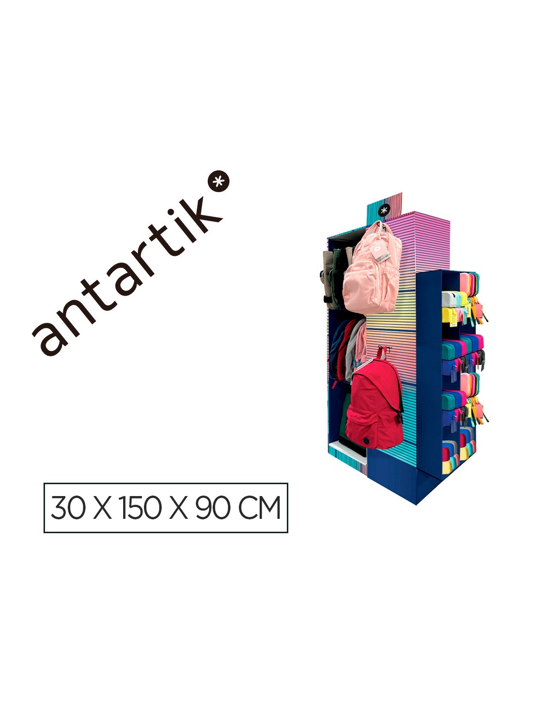 Mochila y estuche portatodo antartik expositor de suelo carton con 46 unidades surtidas 30x150x90 cm