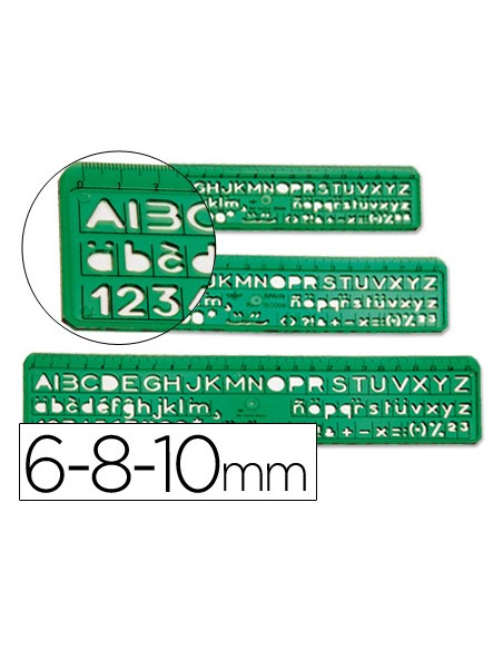 Normografo escolar domingo ferrer 6/8/10 mm plastico verde juego de 3 unidades