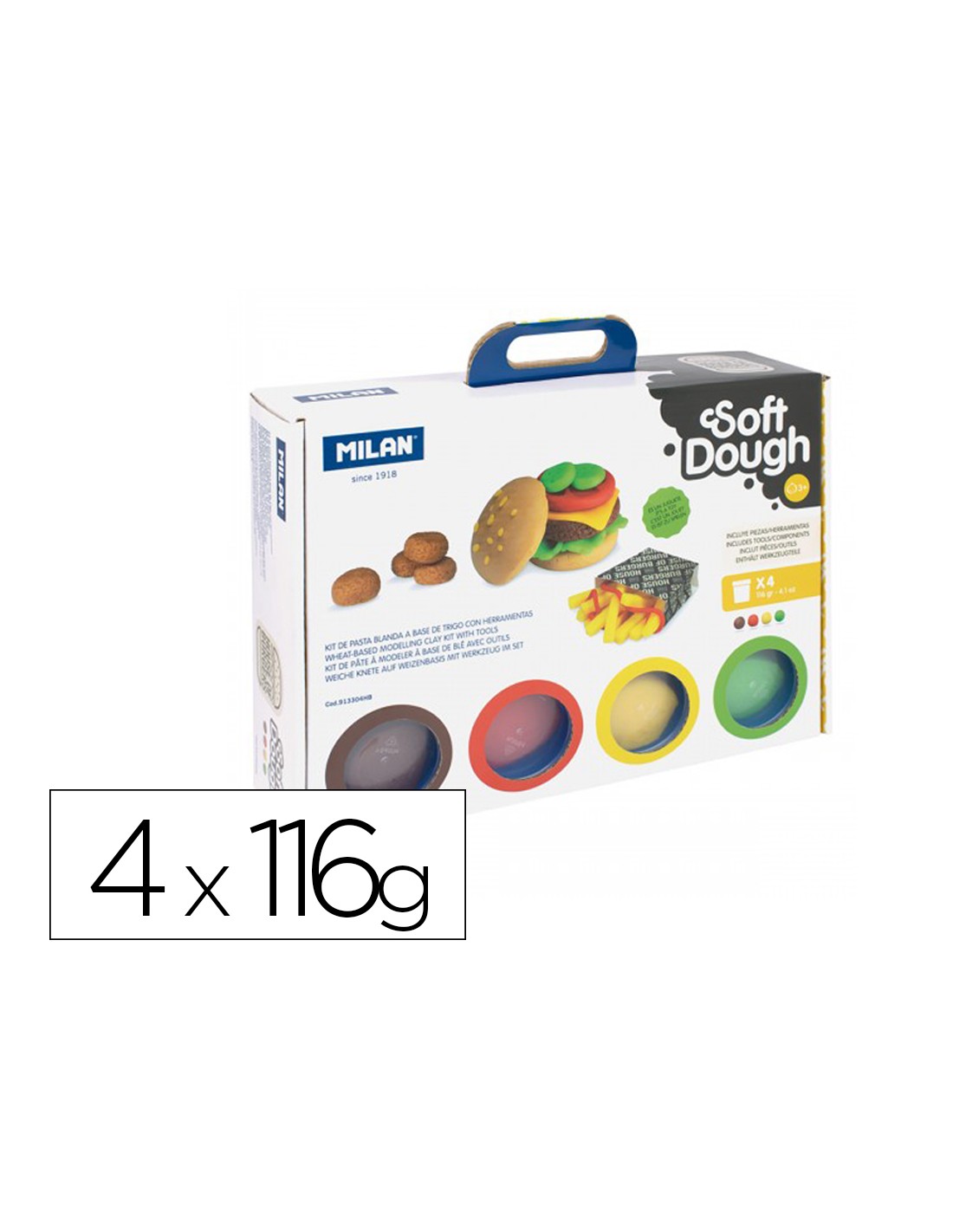 Pasta milan para modelar soft dough casa de las hamburguesas con herramientas maletin con 4 botes colores