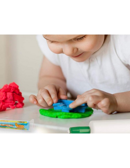 Pasta vegetal coloreada muy moldeable, adecuada a partir de los 3 años. Colores que se pueden mezclar entre sí. No mancha ni ensucia y se desmolda con gran facilidad.