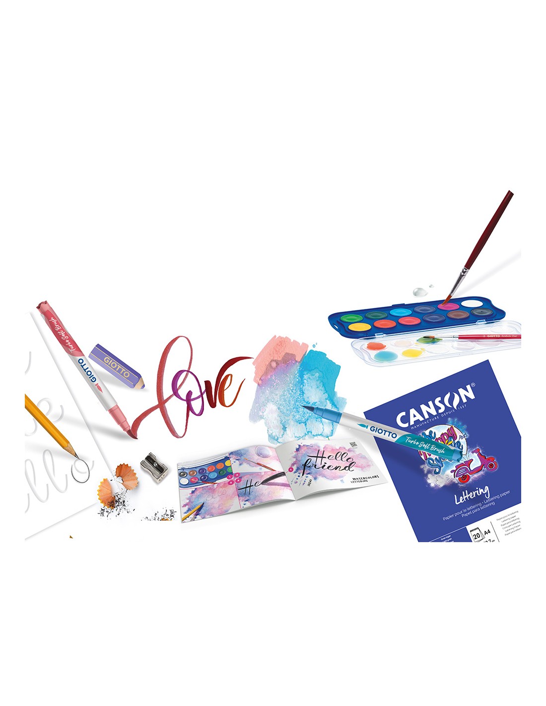 Giotto Art Lab Fancy Lettering set súper creativo para jugar con el papely los colores. Este nuevo conjunto introduce a la técnica del lettering.  Ideal para escribir y dibujar letras, números u otros caracteres creativos.