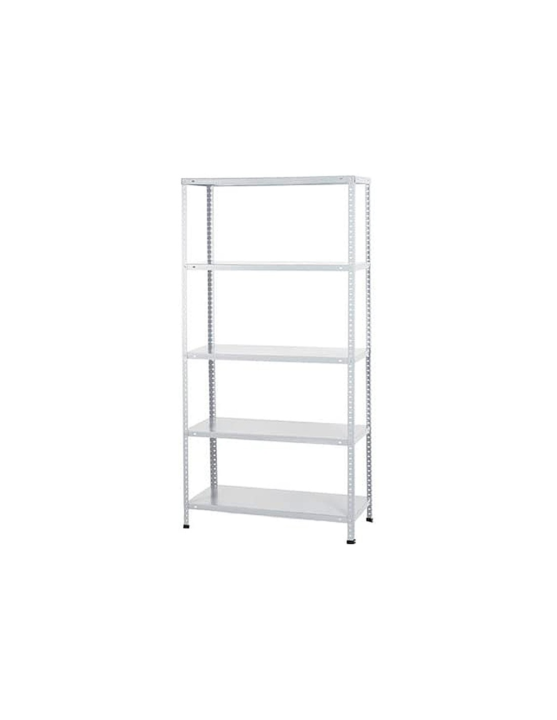 Estantería metálica 5 estantes, 80 kg por estante. Montaje con tornillos. Caben 50 cajas de archivo definitivo. Medidas 90 x 180 x 40 cm.