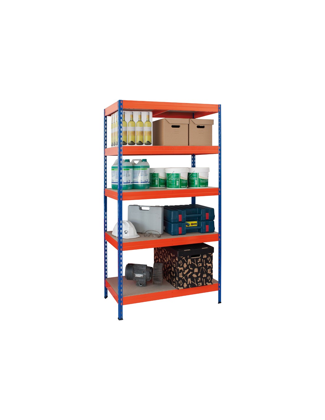 Estanteria metalica ar storage 192x100x50cm 5 estantes 300kg por estante bandejas de madera sin tornillos azul/naranja
