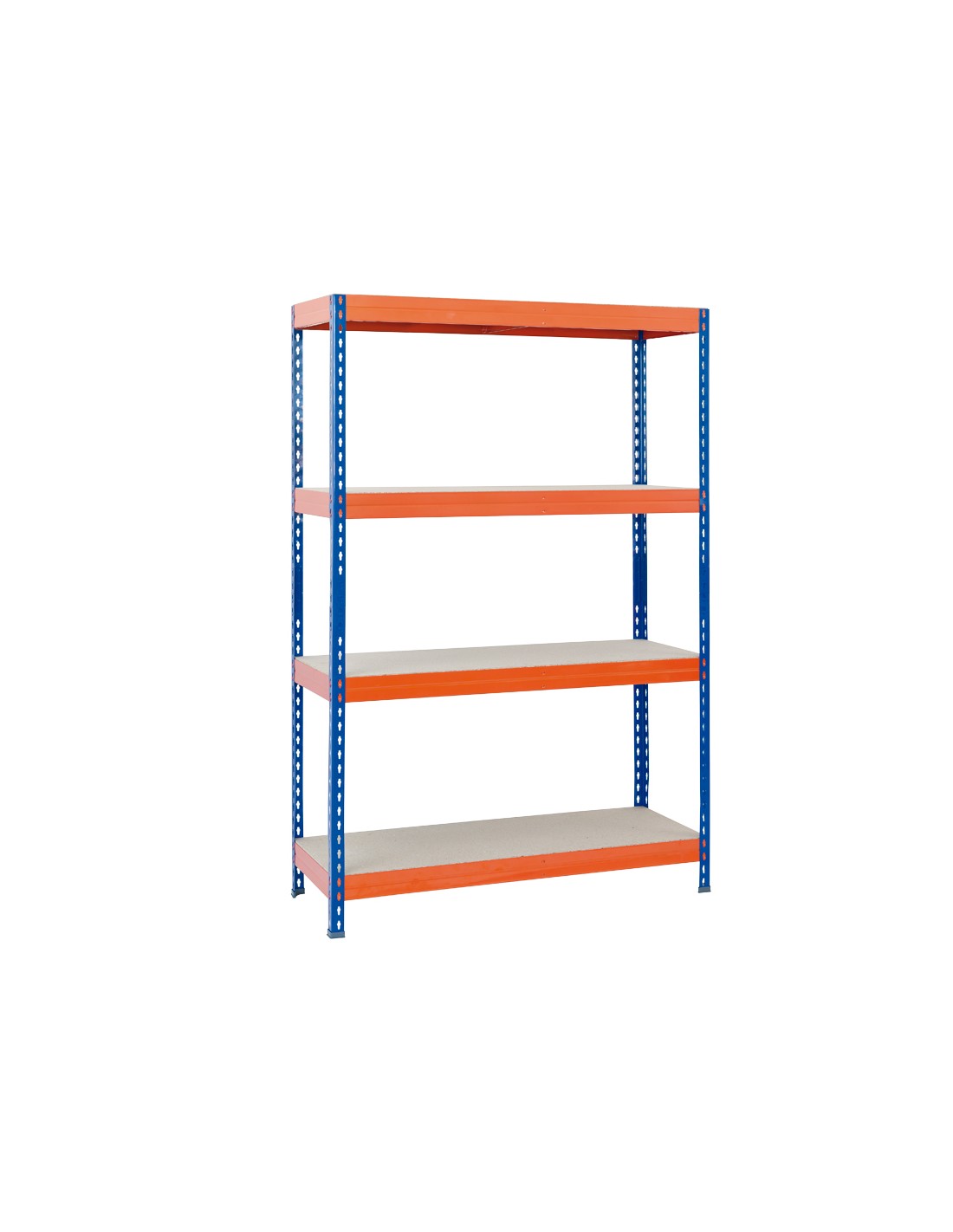 Estanteria metalica ar storage 200x100x60cm 4 estantes 430kg por estante bandejas de maderasin tornillos azul naranja