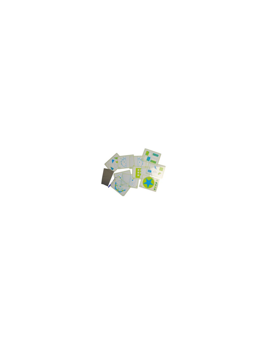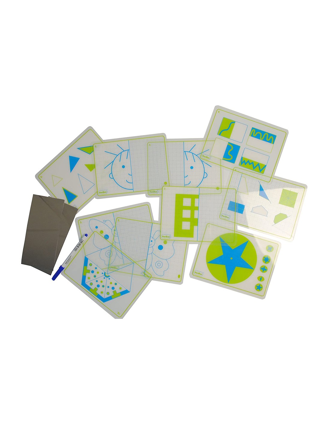 Juego fichas henbea transparentes + espejos simetrias y formas 21x15 cm set 10 tarjetas + 2 espejos