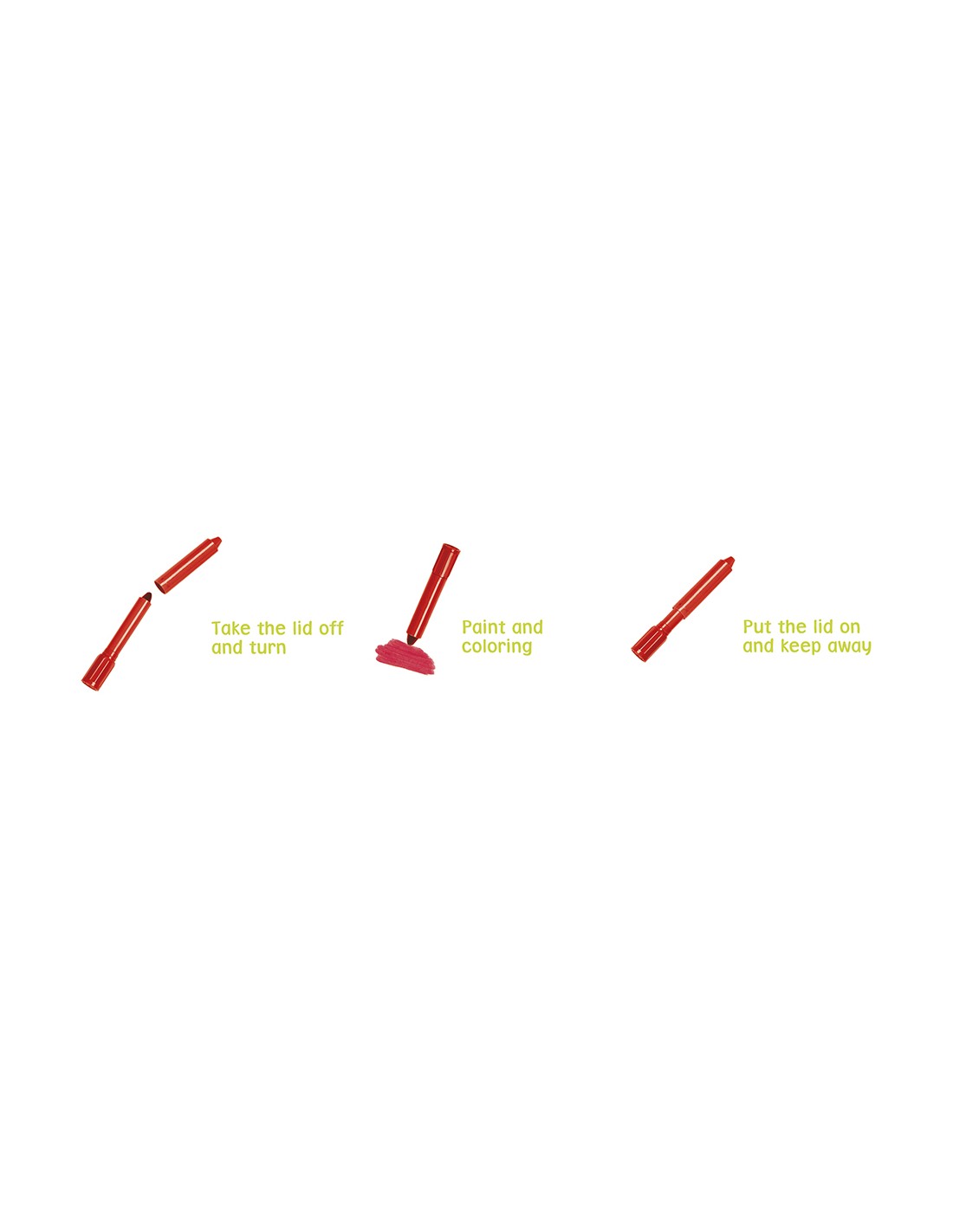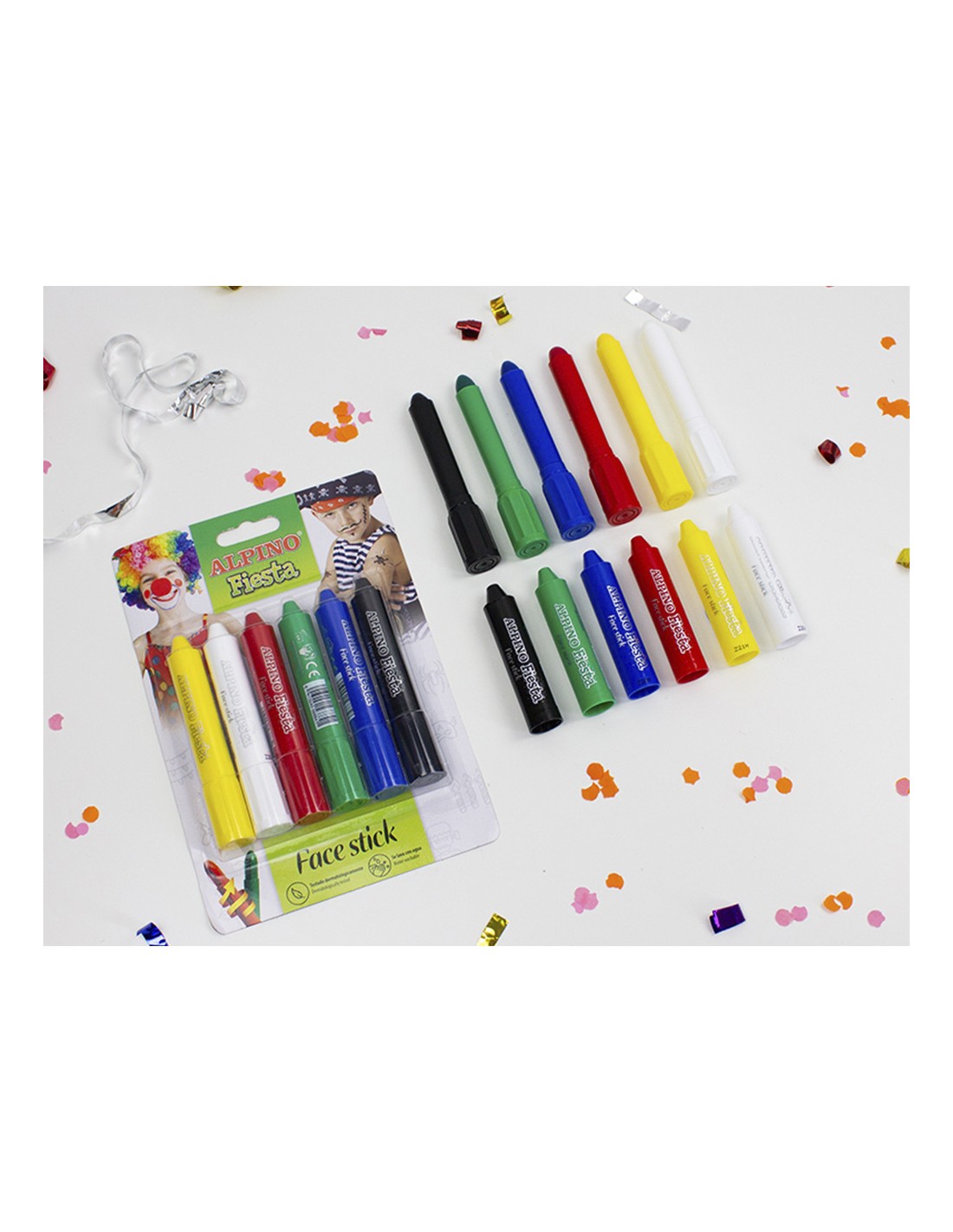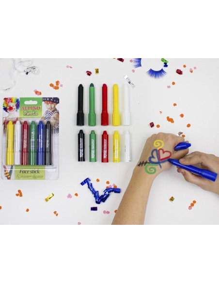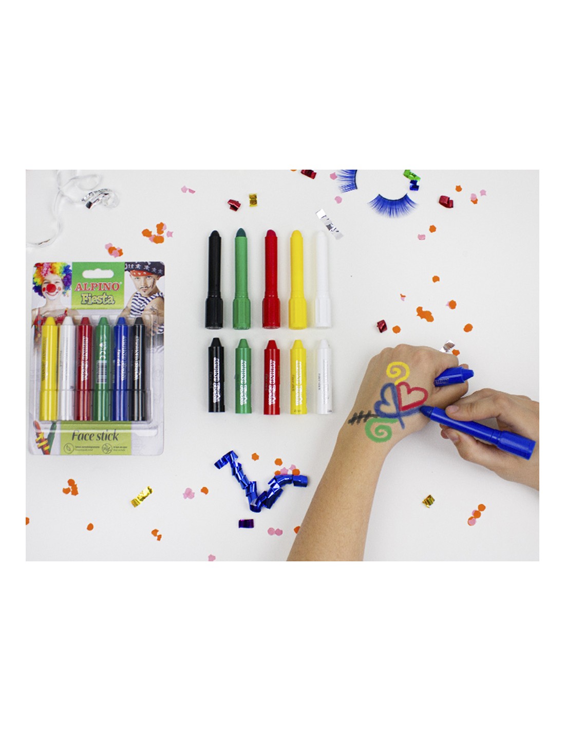 Barras de maquillaje cosmético con protector. Limpio y práctico gracias sistema retráctil giratorio. Para mantener las manos limpias en todo momento. No necesita base. Se lava con agua. Colores surtidos. 5 g. El blíster de 6 unidades.