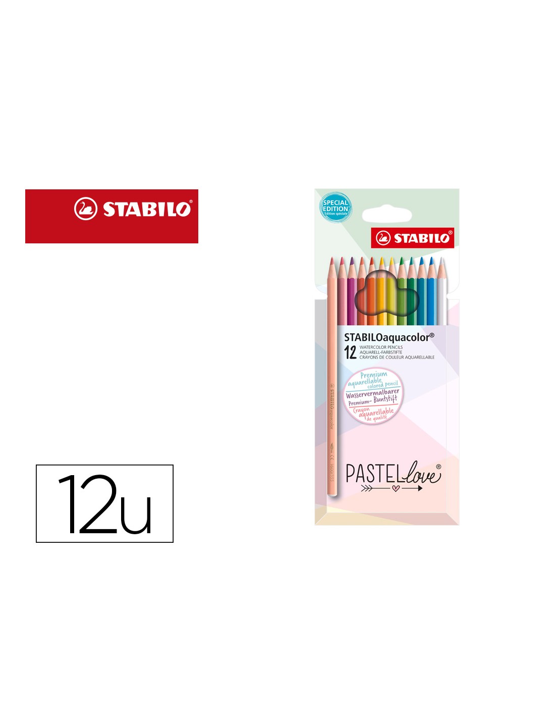 Lapices de colores stabilo aquacolor acuarelables pastel love estuche carton de 12 colores surtidos