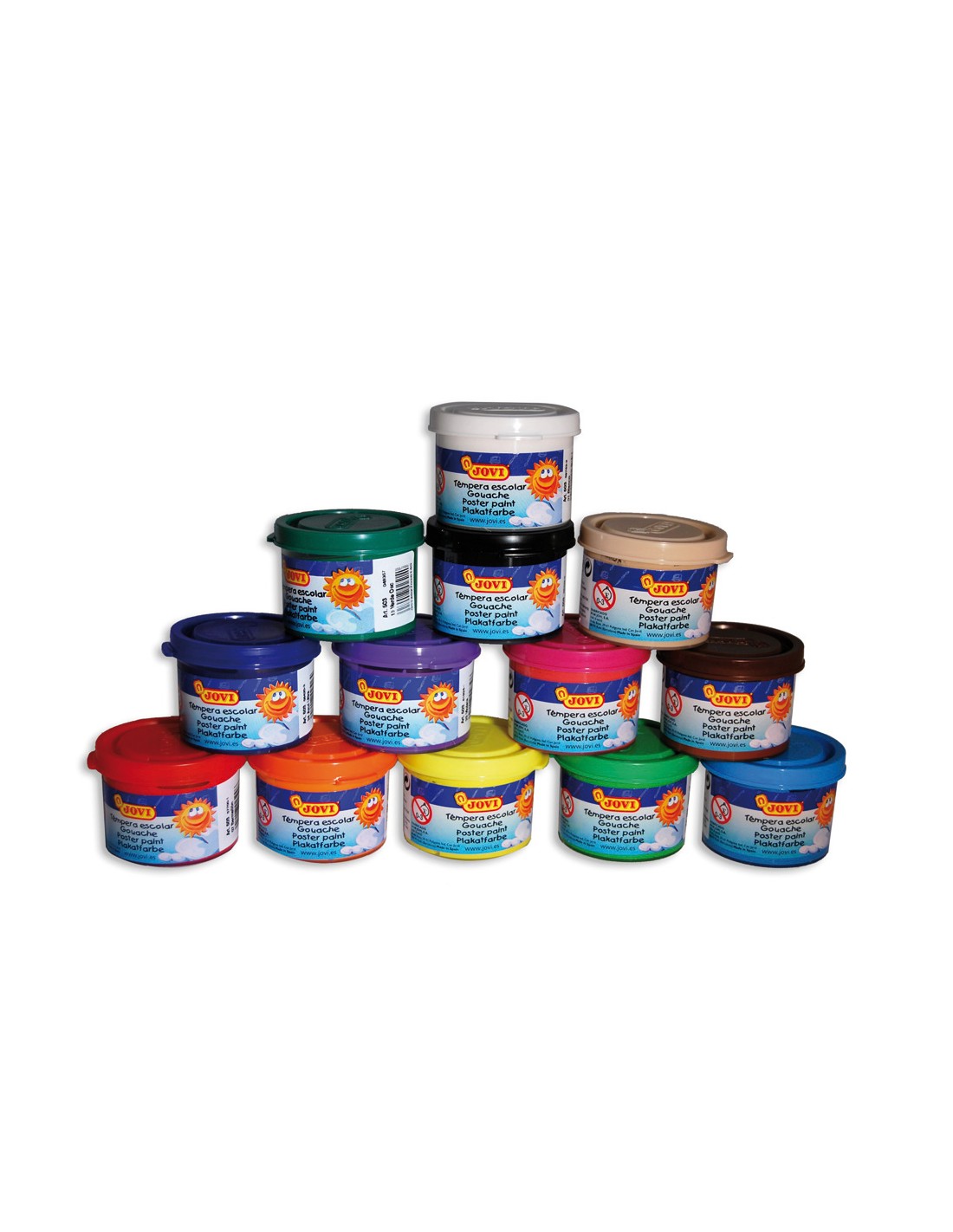 Pintura al agua, opaca y de secado rápido. Ideal para utilizar en papel, cartulina, madera, tela, pasta para modelar y arcilla. Caja monocolor.