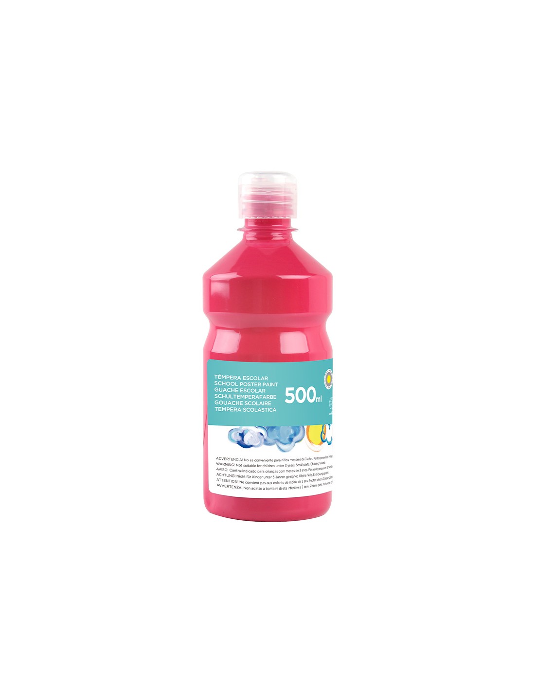 Témpera escolar. Ideal para uso escolar. Adecuada a partir de los 3 años de edad. Superlavable. Con cierre de seguridad. Colores brillantes. La botella de 500 ml.