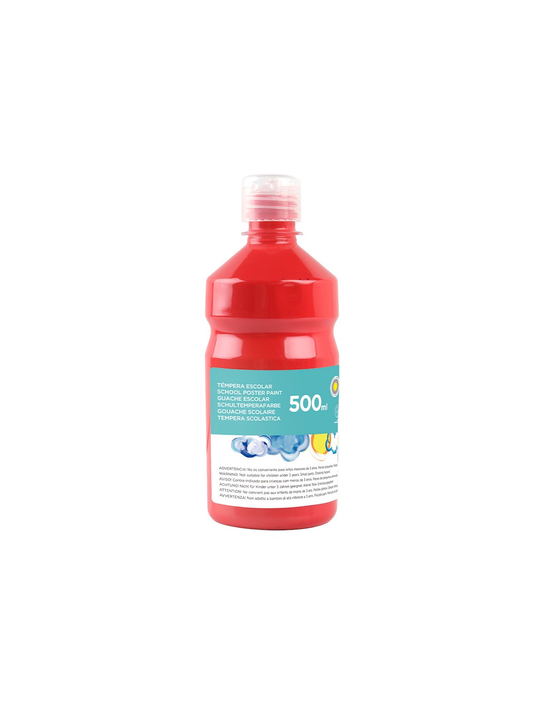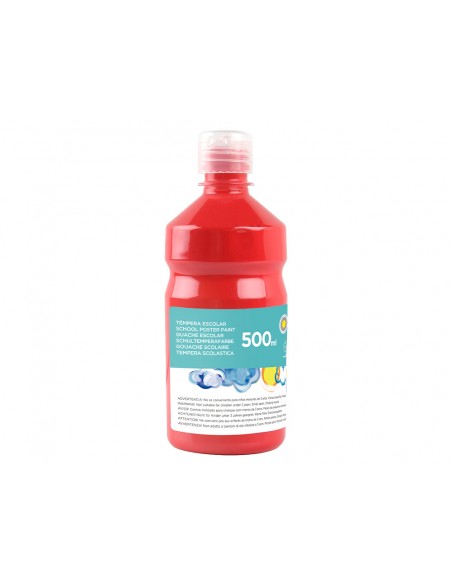 Témpera escolar. Ideal para uso escolar. Adecuada a partir de los 3 años de edad. Superlavable. Con cierre de seguridad. Colores brillantes. La botella de 500 ml.