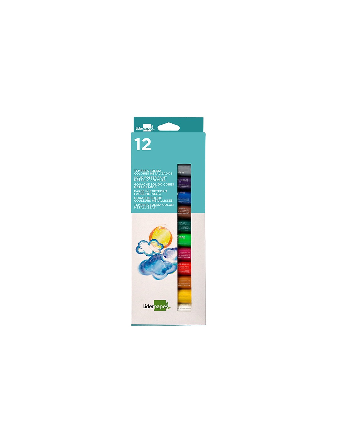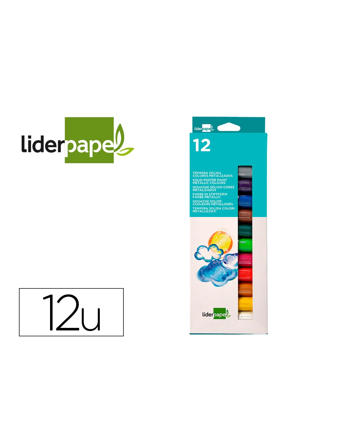 LIDERPAPELTempera solida en barra liderpapel escolar 10 gr caja de 12 colores surtidos