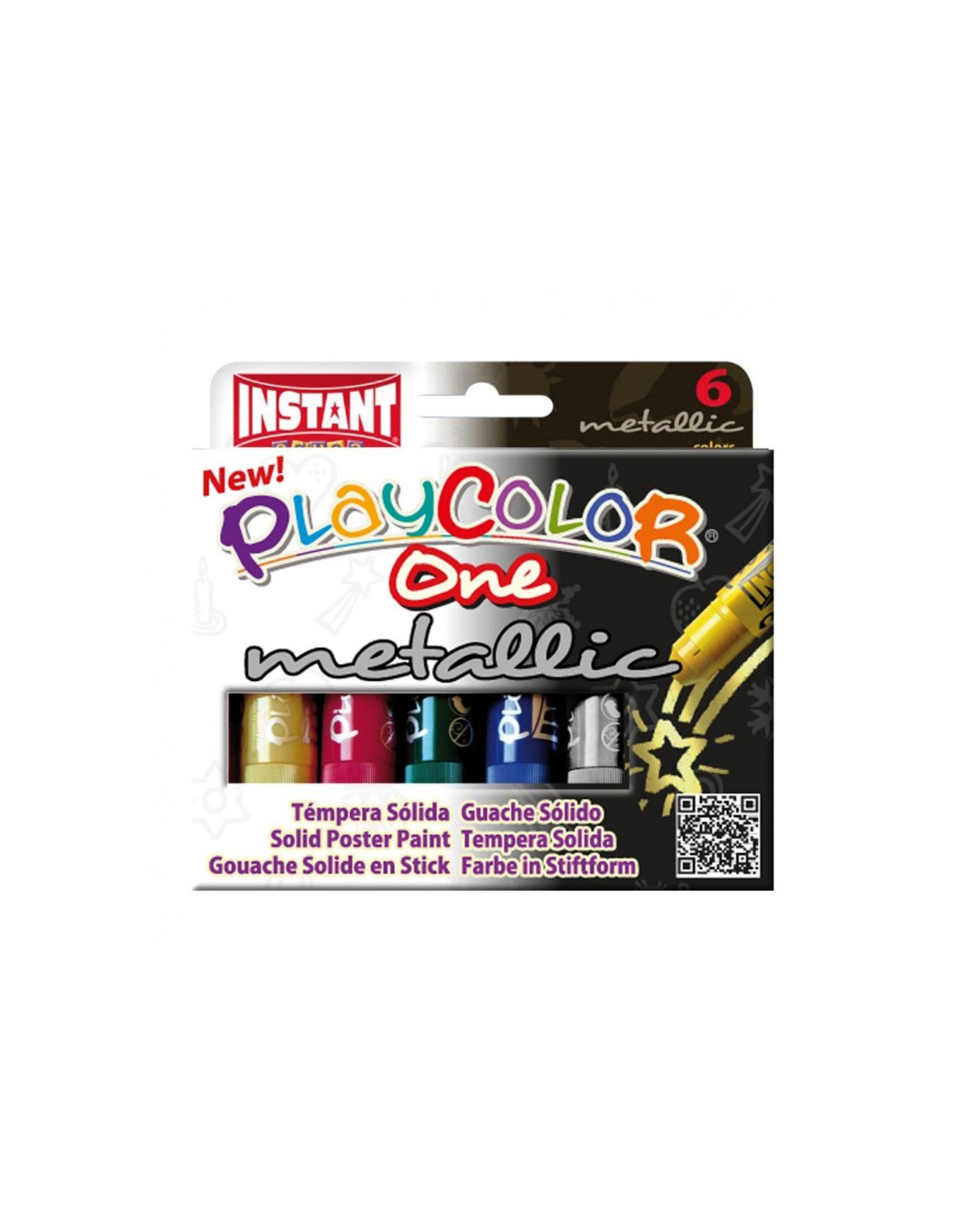 Tempera solida en barra playcolor escolar caja de 6 colores metalizados surtidos