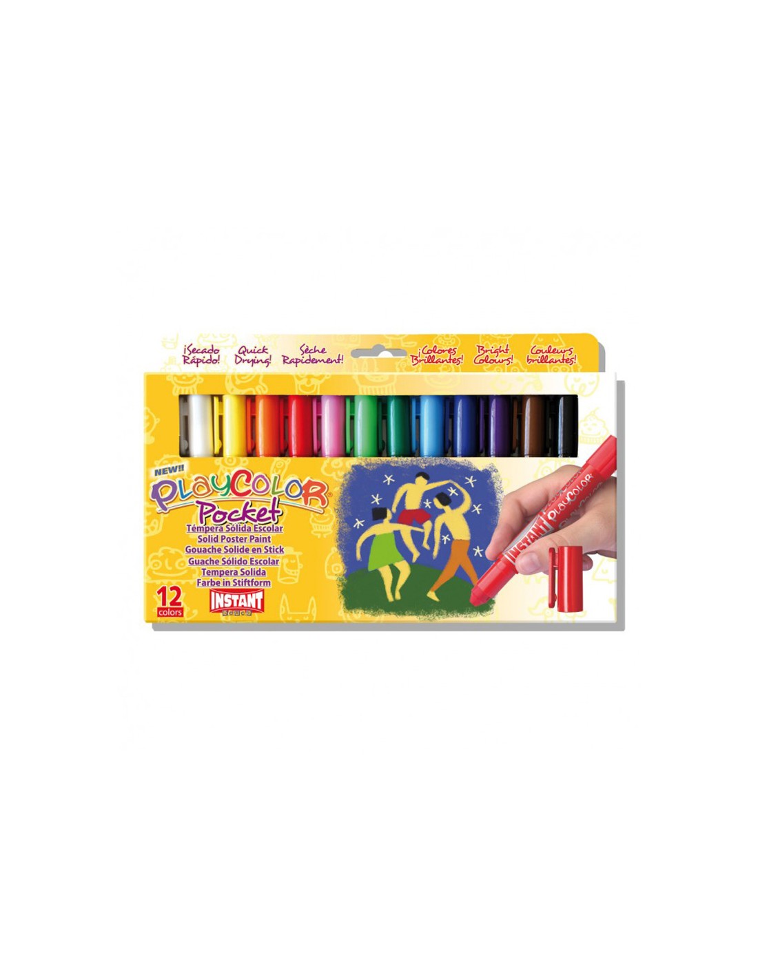 Tempera solida en barra playcolor pocket escolar caja de 12 colores surtidos