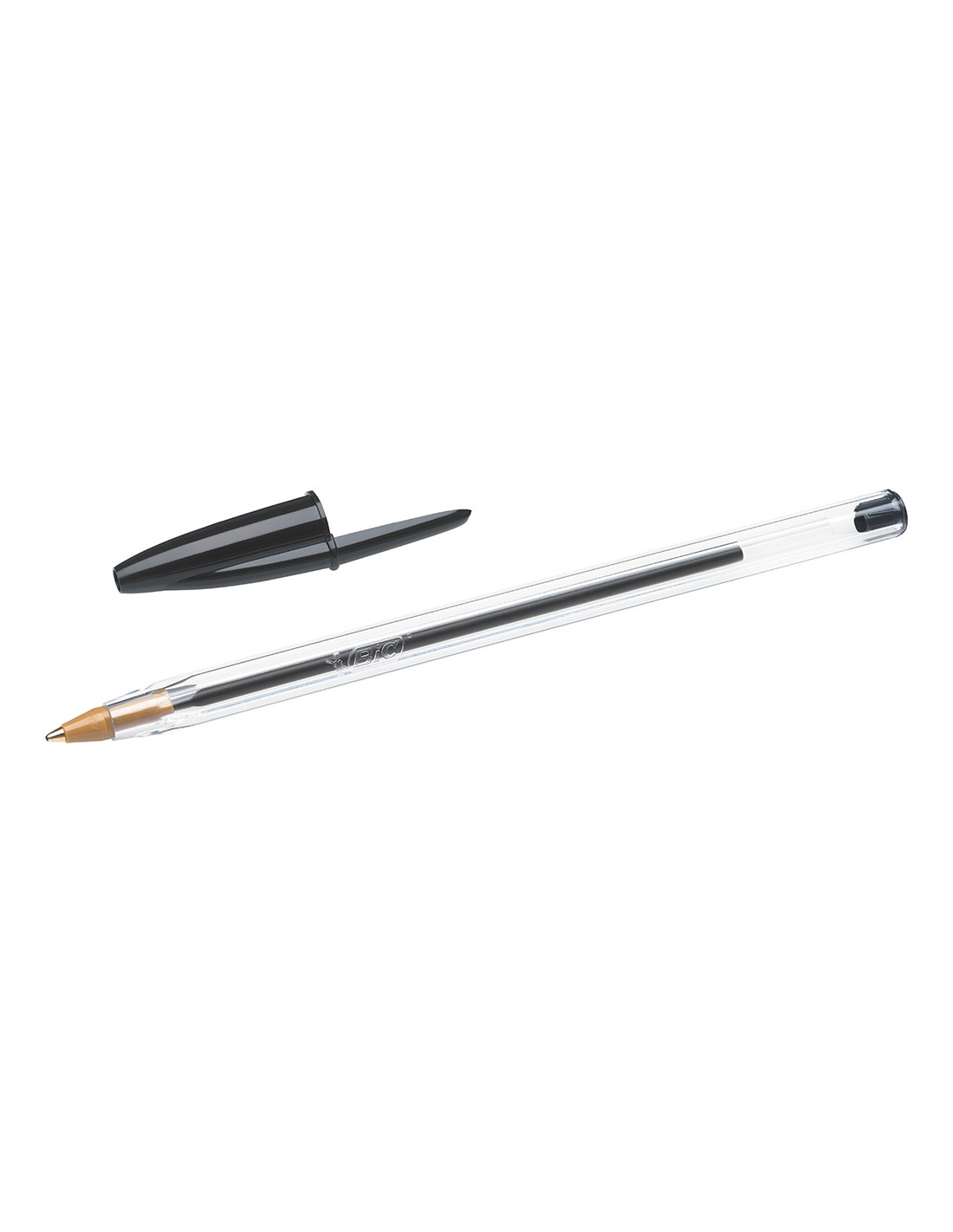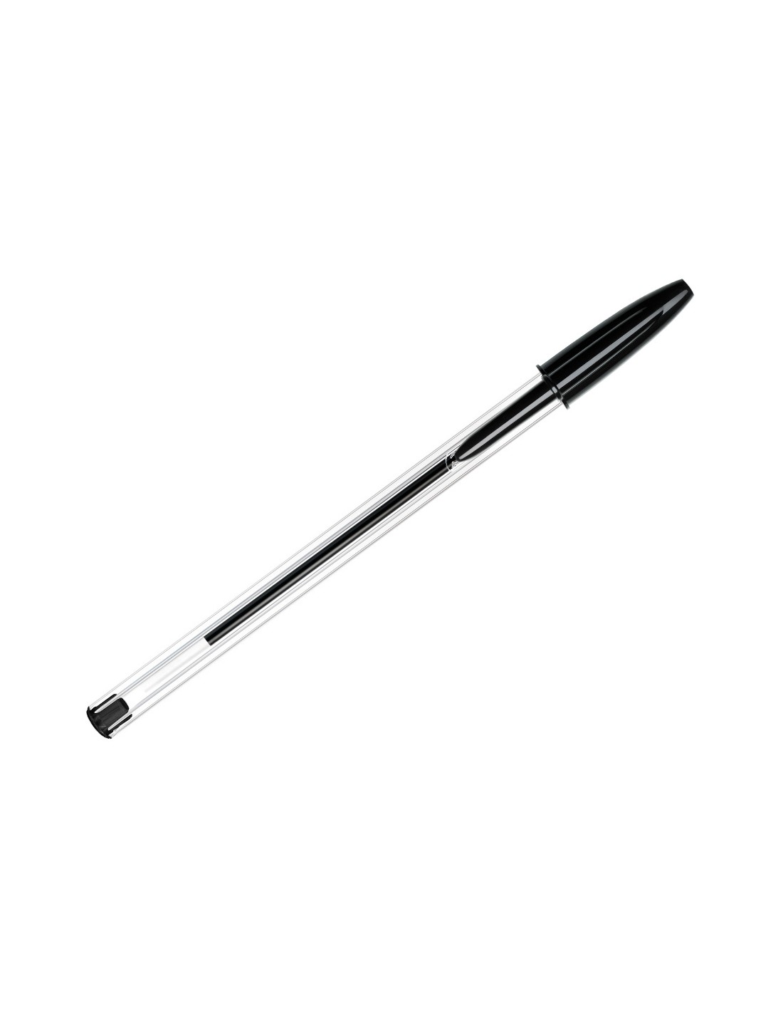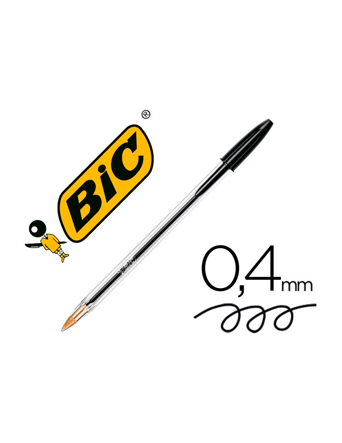El clásico BIC Cristal Original es el bolígrafo más vendido del mundo y este blíster contiene 5 bolígrafos negros. Su punta media de 1,0 mm se desliza por el papel con una suavidad incomparable para ofrecer una escritura sin manchas. Diseño eficaz, sencillo y fiable. Su cuerpo transparente permite comprobar en todo momento el nivel de tinta. El bolígrafo BIC cuenta con suficiente tinta negra como para escribir el equivalente a unos 3 km de trazo. Fabricados con los materiales mínimos necesarios y certificados conla etiqueta ecológica NF Environnement.