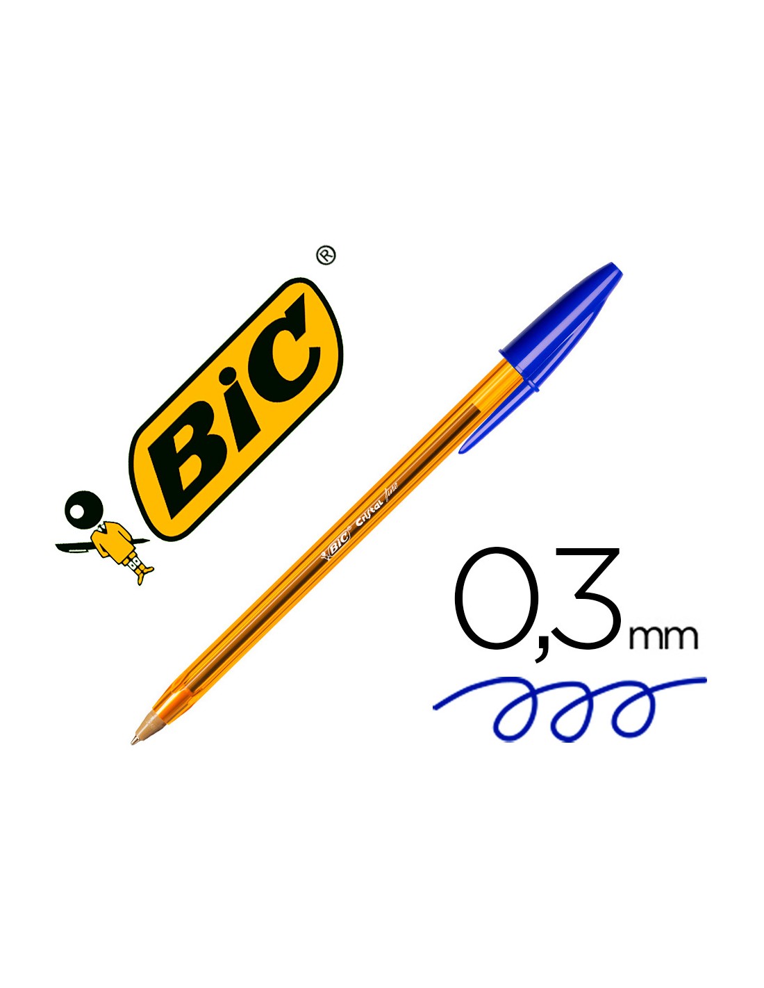 Cuerpo translúcido y capuchón ventilado y punta del color de la tinta. Escritura fina para obtener un texto más nítido. Tinta a base de aceite. Capuchón del color de la tinta. Certificado ecológico NF. Garantiza 3,5 km de escritura. Punta exclusiva Bic de 0,8 mm. Trazo de 0,3 mm.