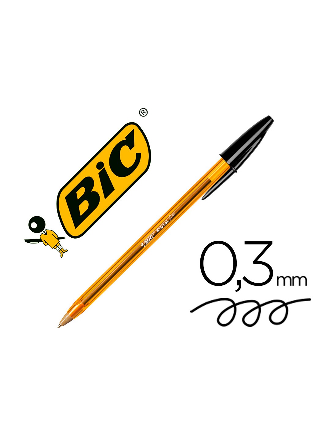 Cuerpo translúcido y capuchón ventilado y punta del color de la tinta. Escritura fina para obtener un texto más nítido. Tinta a base de aceite. Capuchón del color de la tinta. Certificado ecológico NF. Garantiza 3,5 km de escritura. Punta exclusiva Bic de 0,8 mm. Trazo de 0,3 mm.