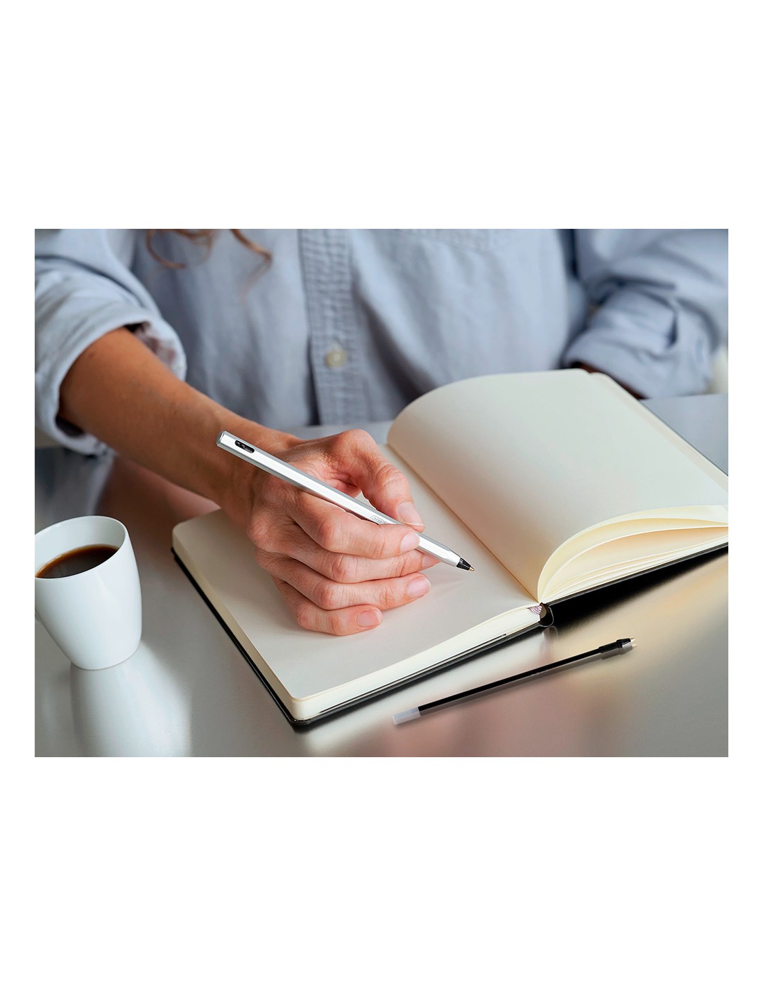 Bolígrafo de primera calidad con un duradero cuerpo de metal plateado mate y capuchón a juego de plástico 96% reciclado. Tinta a base de aceite. Forma hexagonal para un agarre controlado y una gran comodidad. Punta media de 1,0 mm. Trazo de línea de 0,32 mm. Diseño sostenible. Bolígrafo + 2 recambios fácilmente reemplazables gracias al botón de recarga rápida. PRODUCTO ECOLÓGICO.