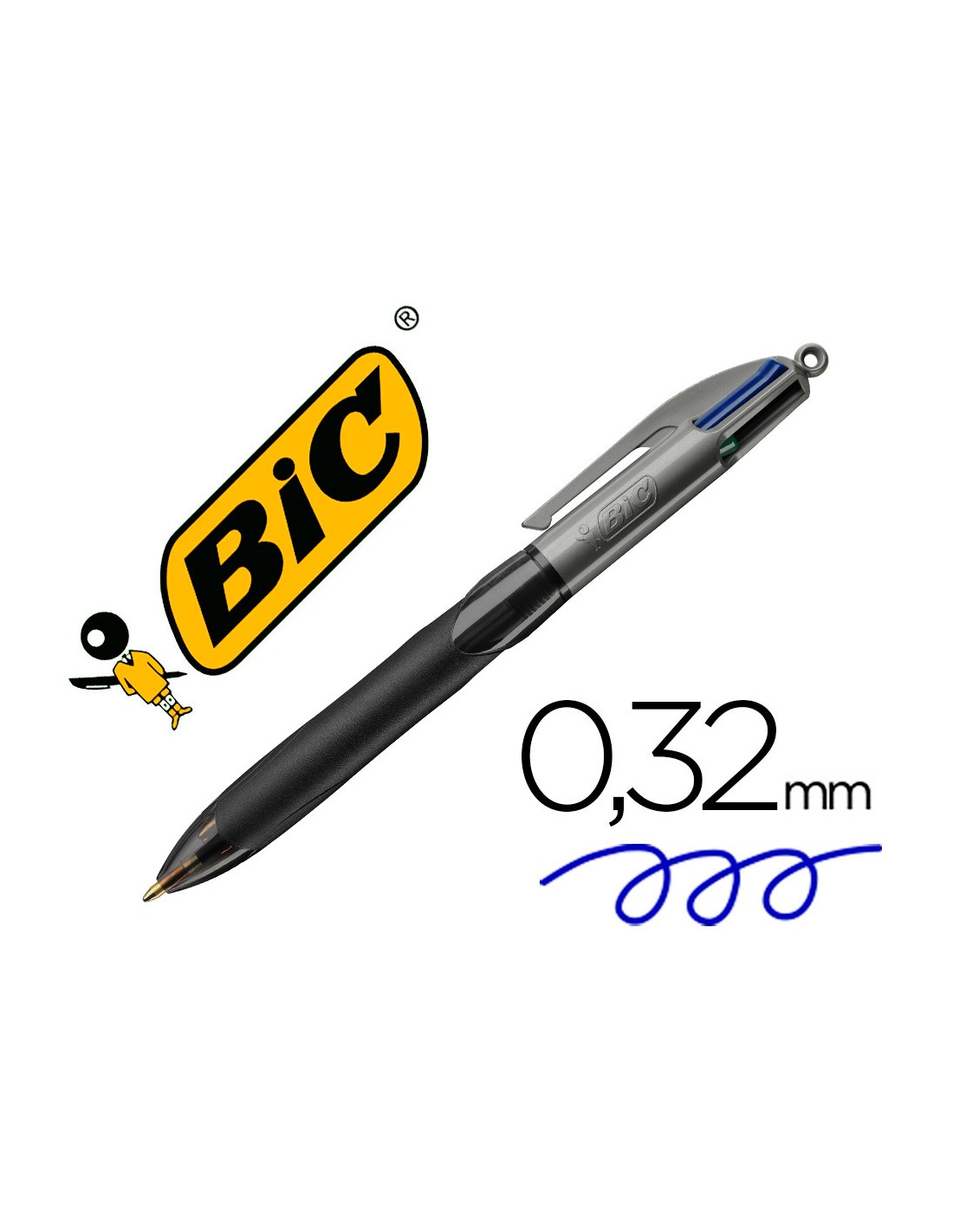 Boligrafo bic cuatro colores con grip colore negro punta 1,3 mm