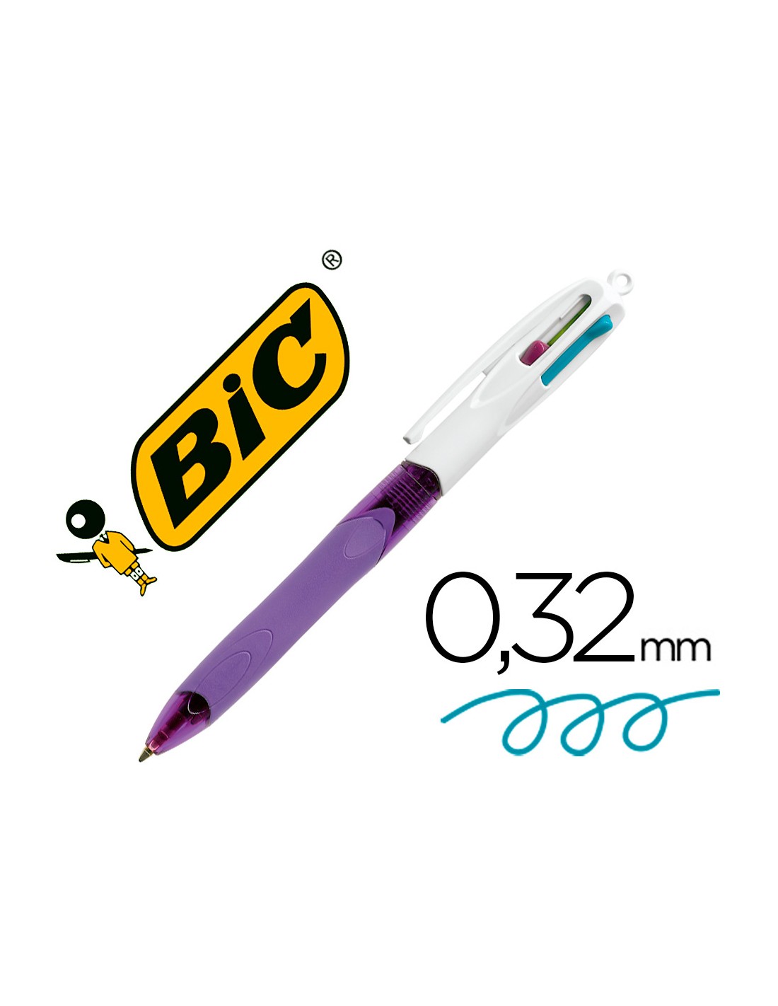 Boligrafo bic cuatro colores con grip colores pastel punta 1 mm
