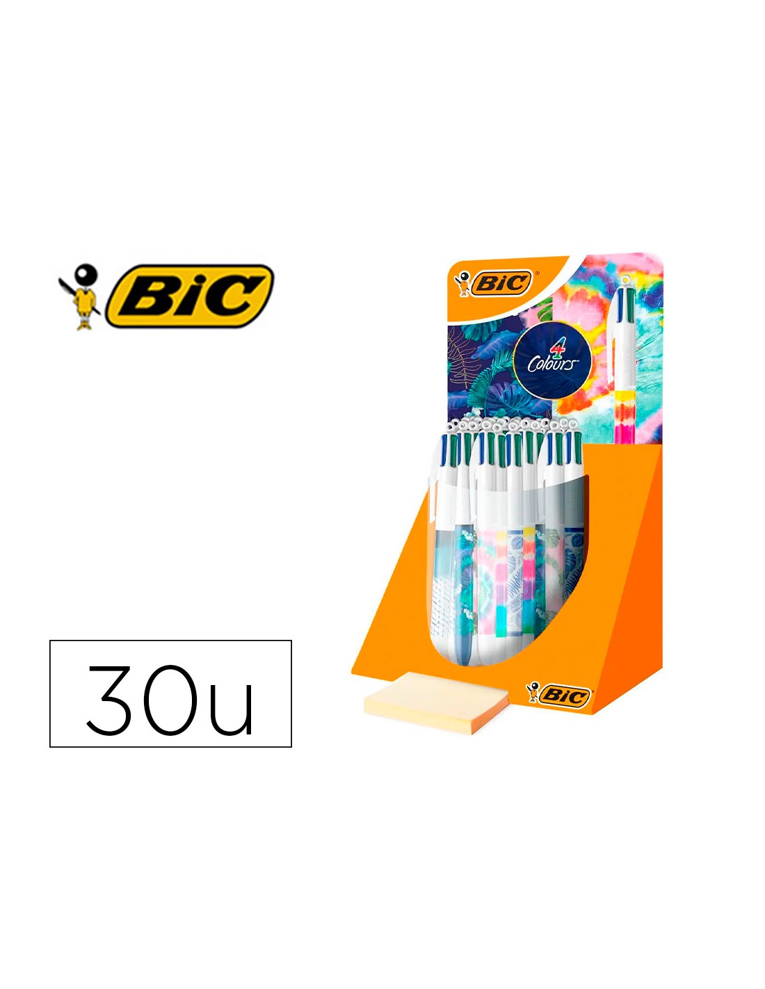 Boligrafo bic cuatro colores decorados punta de 1 mm expositor de 30 unidades