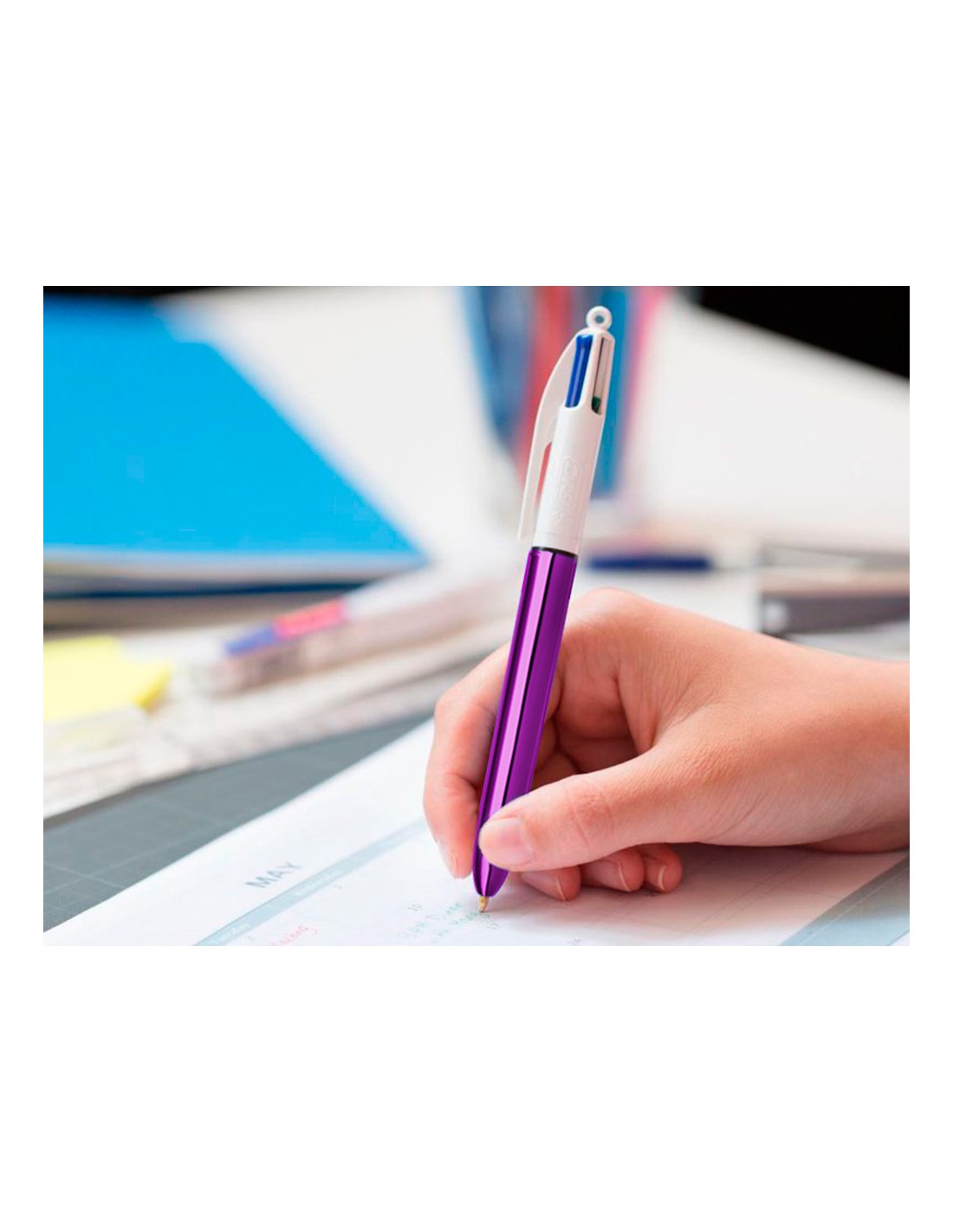 Boligrafo bic cuatro colores shine morado punta de 1 mm
