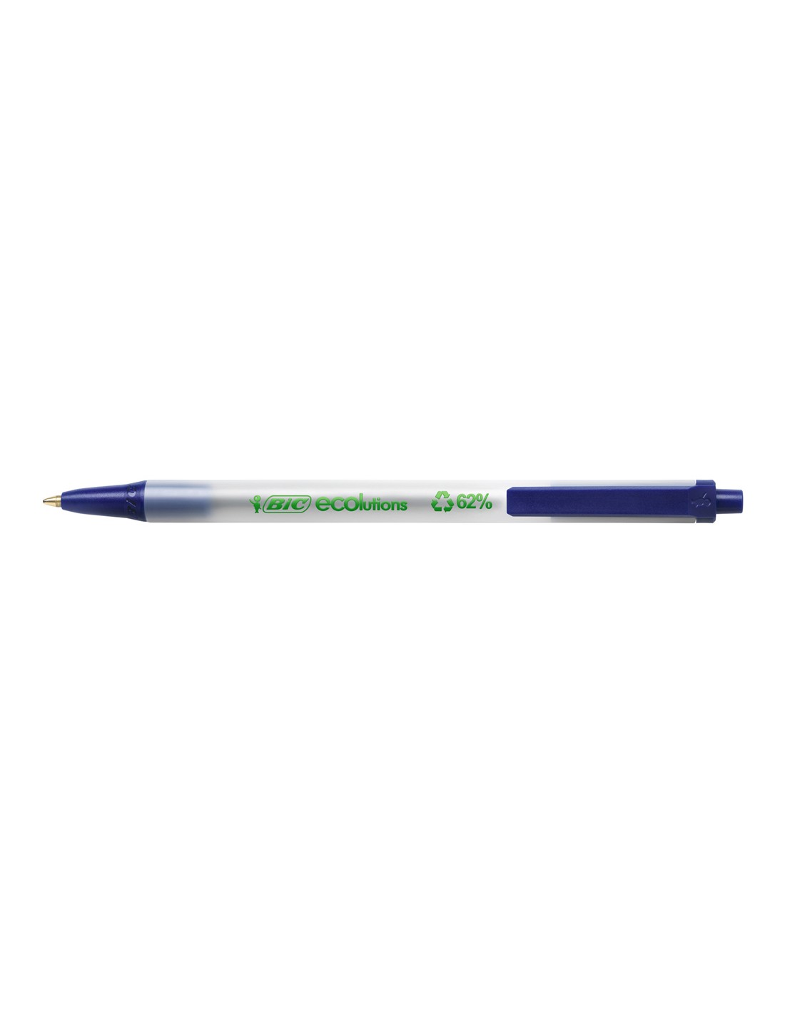 Bolígrafo retráctil reciclado de punta media. Fabricado con un 62% de material reciclado. Producto certificado con la etiqueta ecológica NF Environement. Tinta a base de aceite. Cuerpo fino translúcido. Punta de 1 mm. Trazo de 0,32 mm.