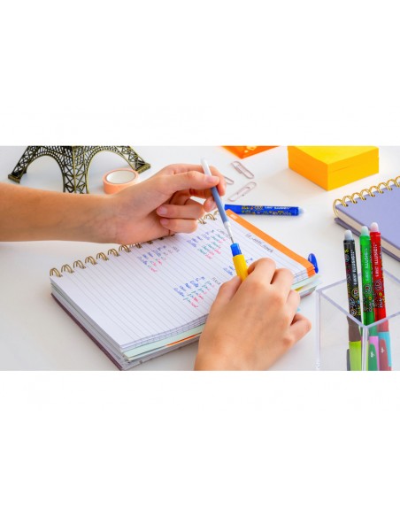 Bolígrafo con tinta de gel. Tinta borrable con tecnología termosensible. Escritura suave y cómodo grip de goma. Punta 0,7 mm y trazo 0,35 mm.