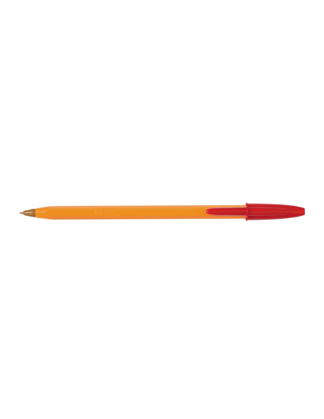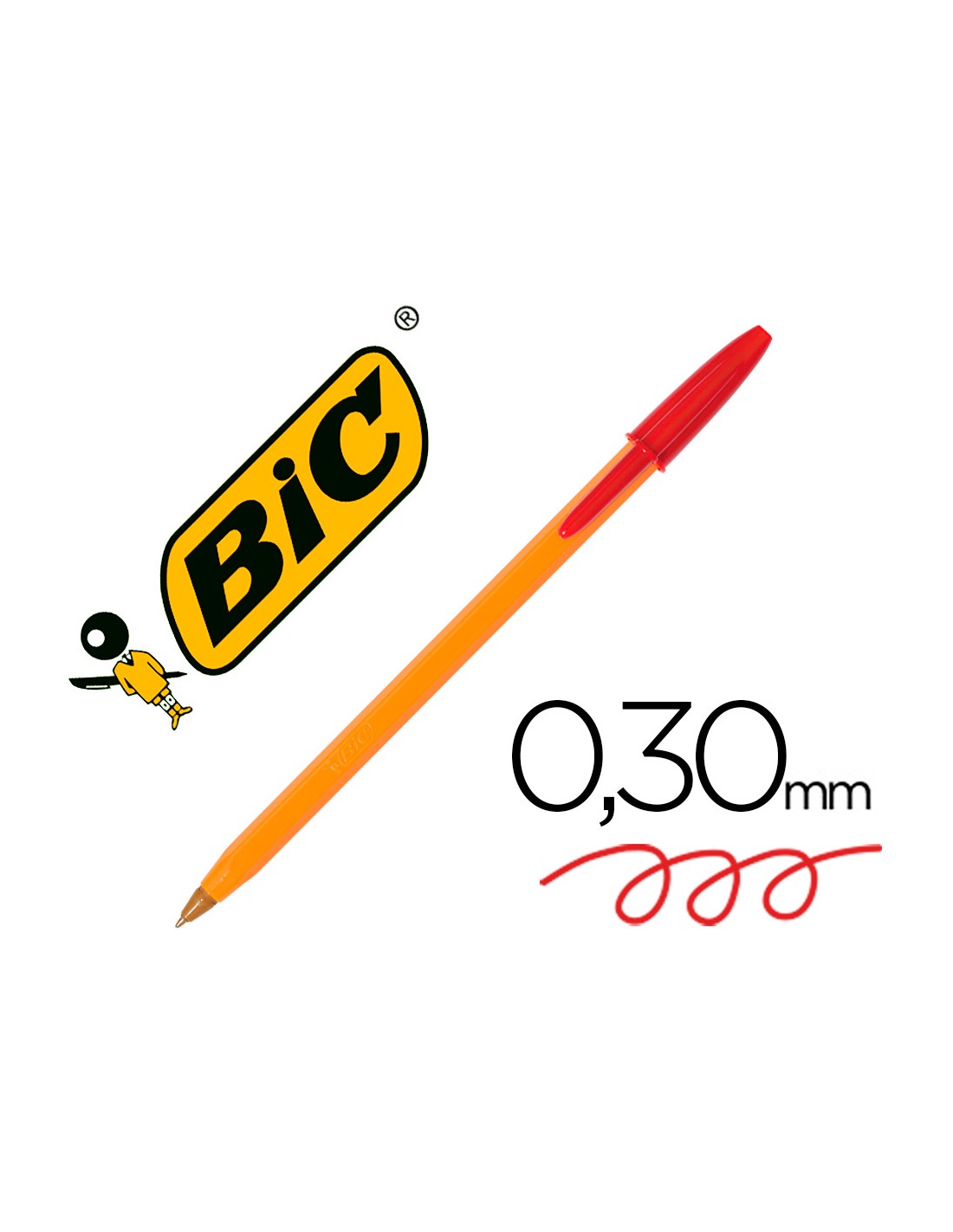 Bolígrafo de escritura fina de alta precisión. Tinta a base de aceite. Cuerpo clásico en color naranja y capuchón ventilado y tapón del color de la tinta. Tinta de calidad, secado rápido y escritura suave. Punta de 0,8 mm. Trazo de 0,3 mm.