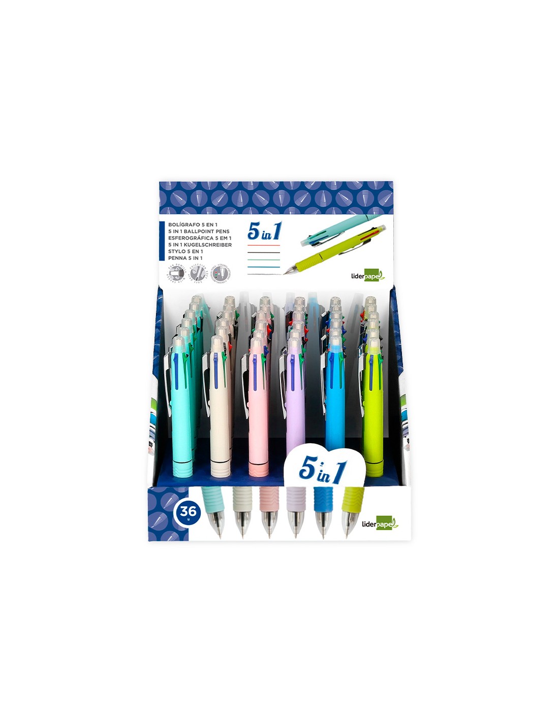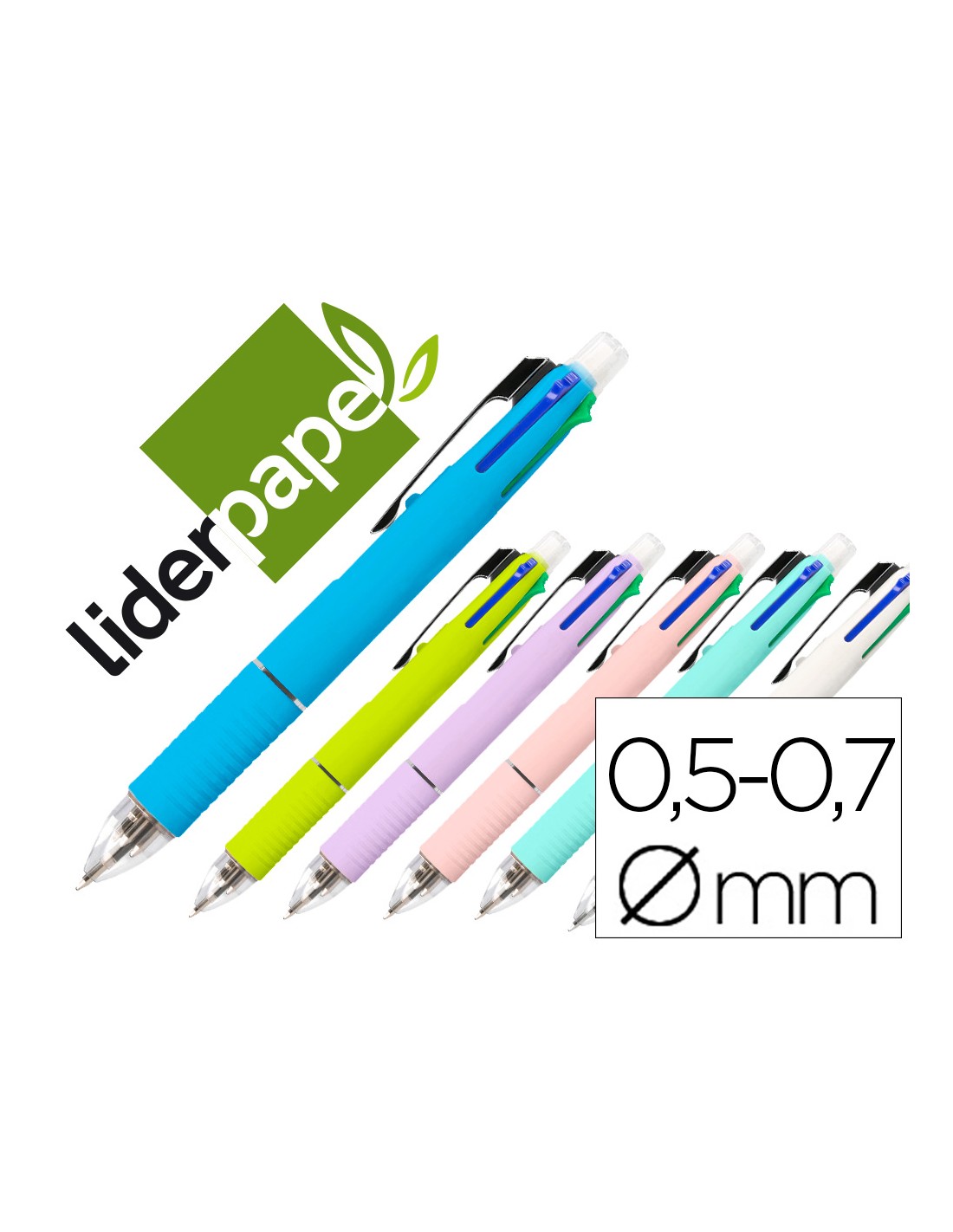 Boligrafo liderpapel 5 en 1 azul negro rojo verde 0,7m y portaminas 0,5mm