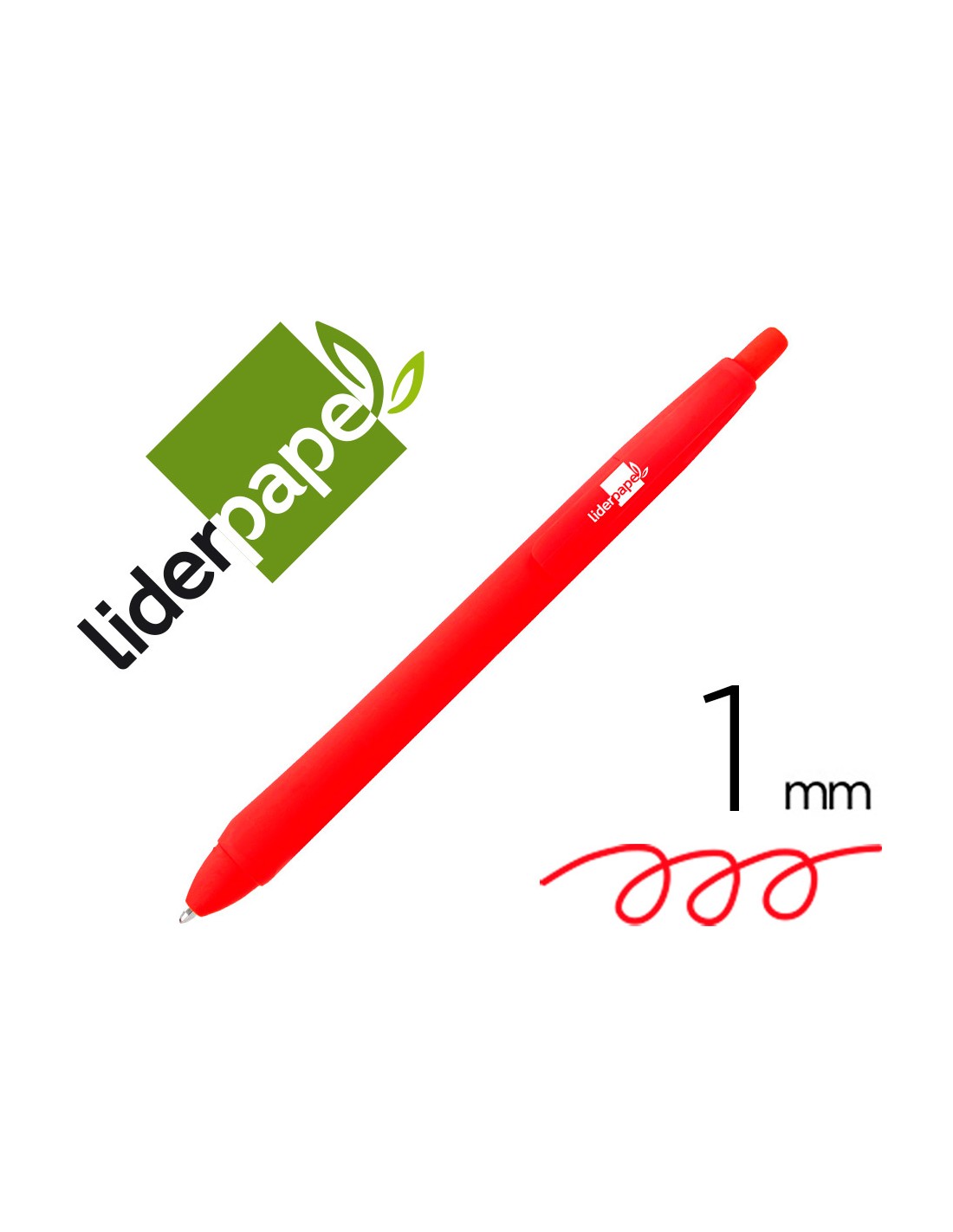 Boligrafo liderpapel gummy touch retractil 1 mm tinta roja