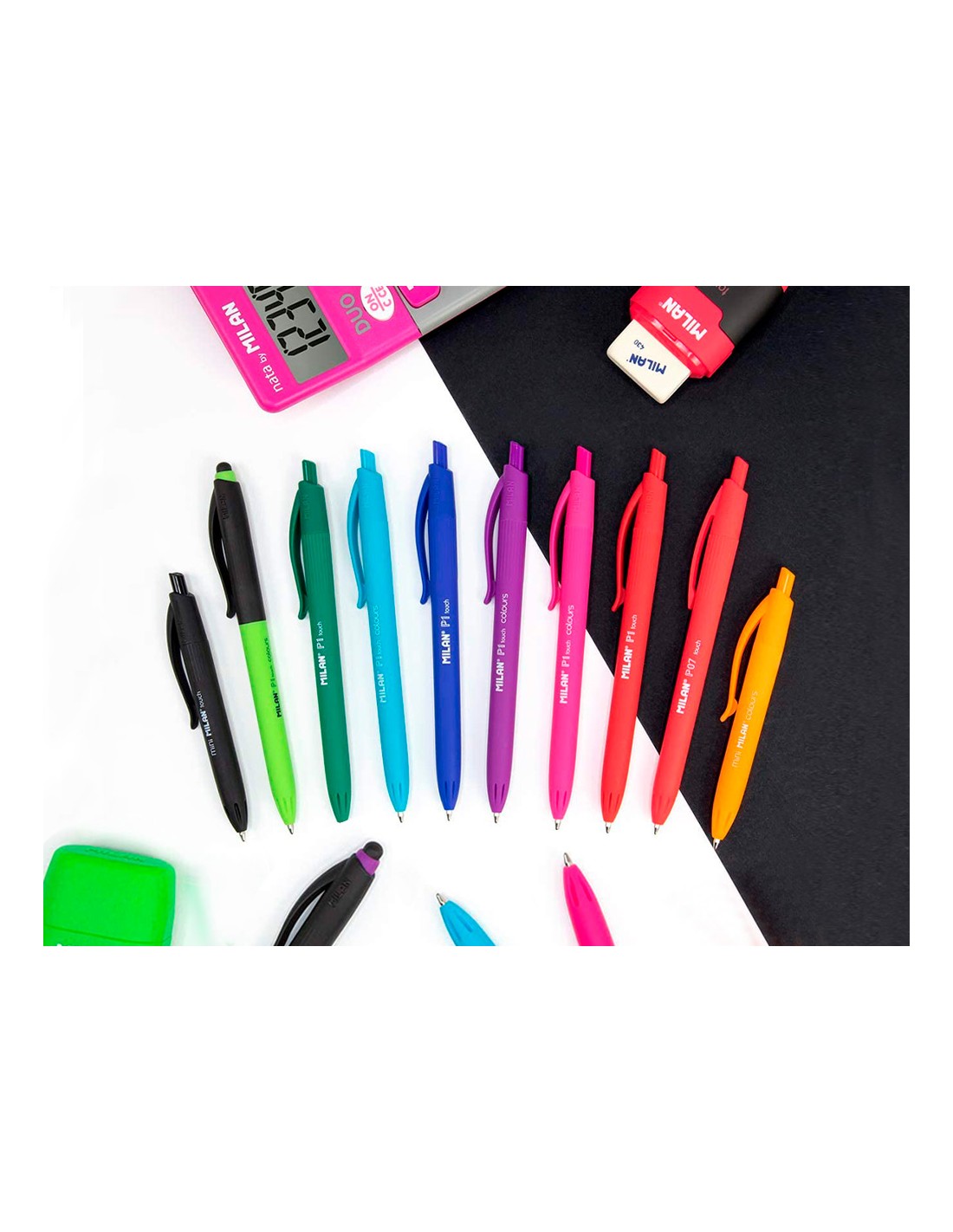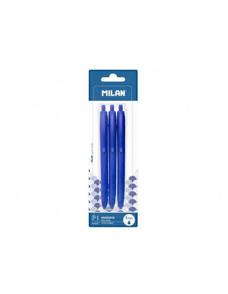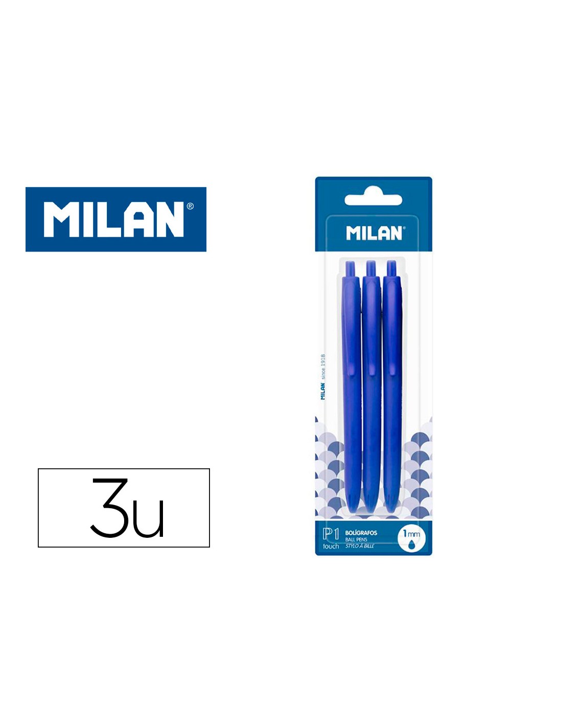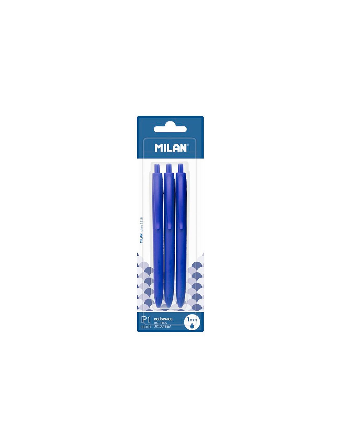 Boligrafo milan p1 retractil 1 mm touch azul blister de 3 unidades