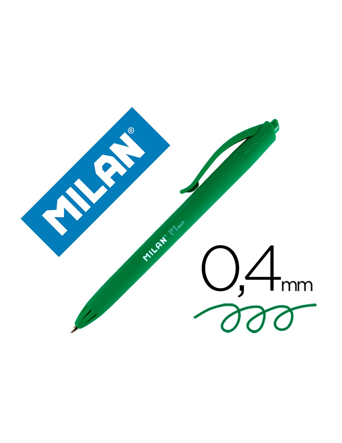 Tinta de aceite fabricada en Alemania. Cuerpo del mismo color que la tinta. Diseño original creado por el departamento de I+D de MILAN. Longitud de escritura aproximada de 1200 metros. Punta 1 mm. Trazo de 0,4 mm.