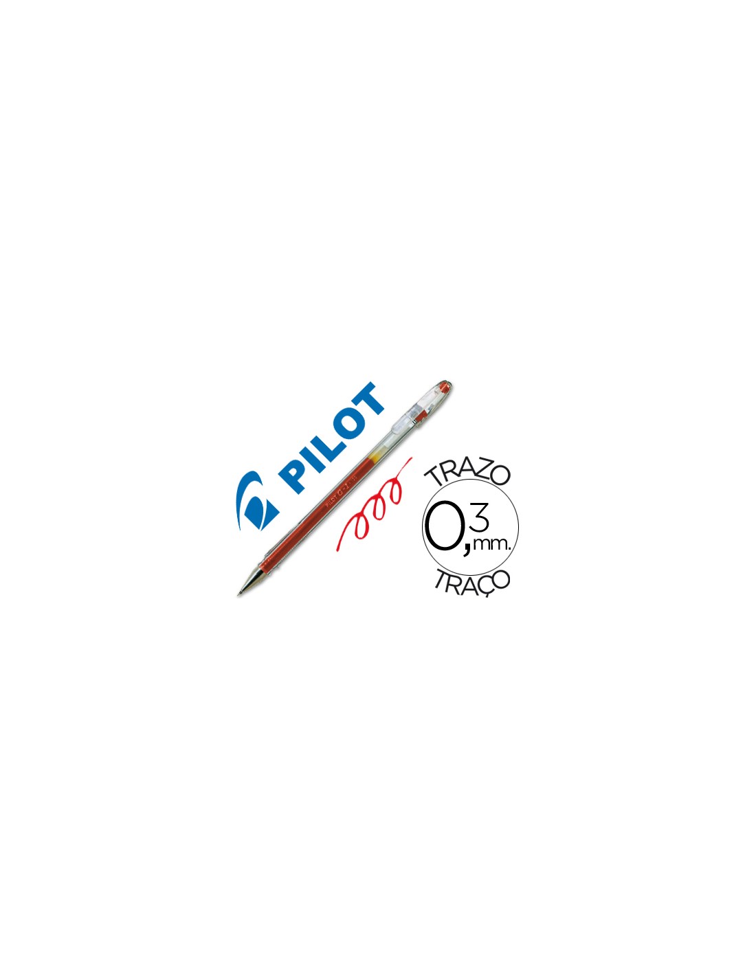 Bolígrafo con tinta gel pigmentada. Cuerpo transparente que permite ver el nivel de la tinta. Punta de bola de acero inoxidable. Punta de 0,5 mm. Trazo de 0,3 mm.