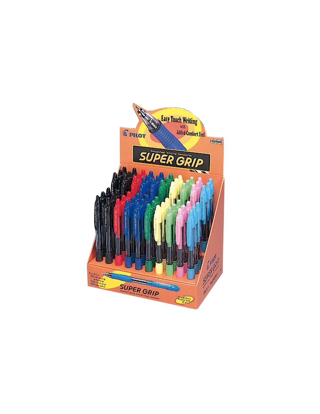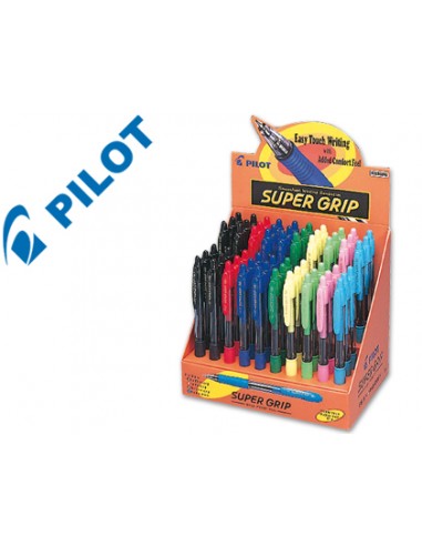 BOLIGRAFO PILOT SUPER GRIP RETRACTIL SUJECION DE CAUCHO. TINTA BASE DE ACEITE. ANCHO DE ESCRITURA 0,4 MM. DIAMETRO DE LA BOLA 1 MM. EXPOSITOR DE COLORES SURTIDOS