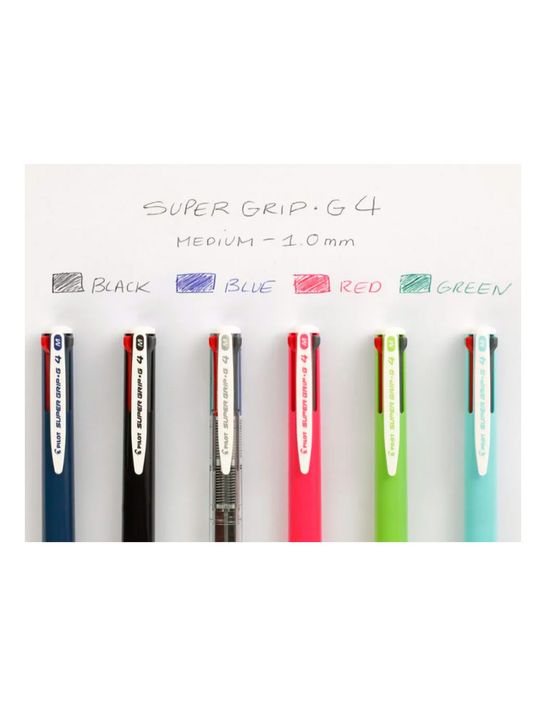 Boligrafo pilot super grip g 4 colores retractil sujecion de caucho tinta base de aceite cuerpo color azul