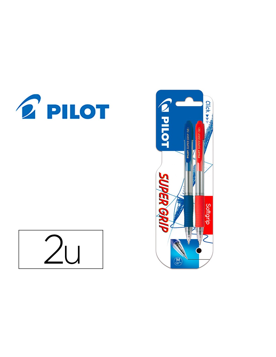 Boligrafo pilot super grip retractil sujecion de caucho tinta base de aceite en blister 1 azul + 1 rojo