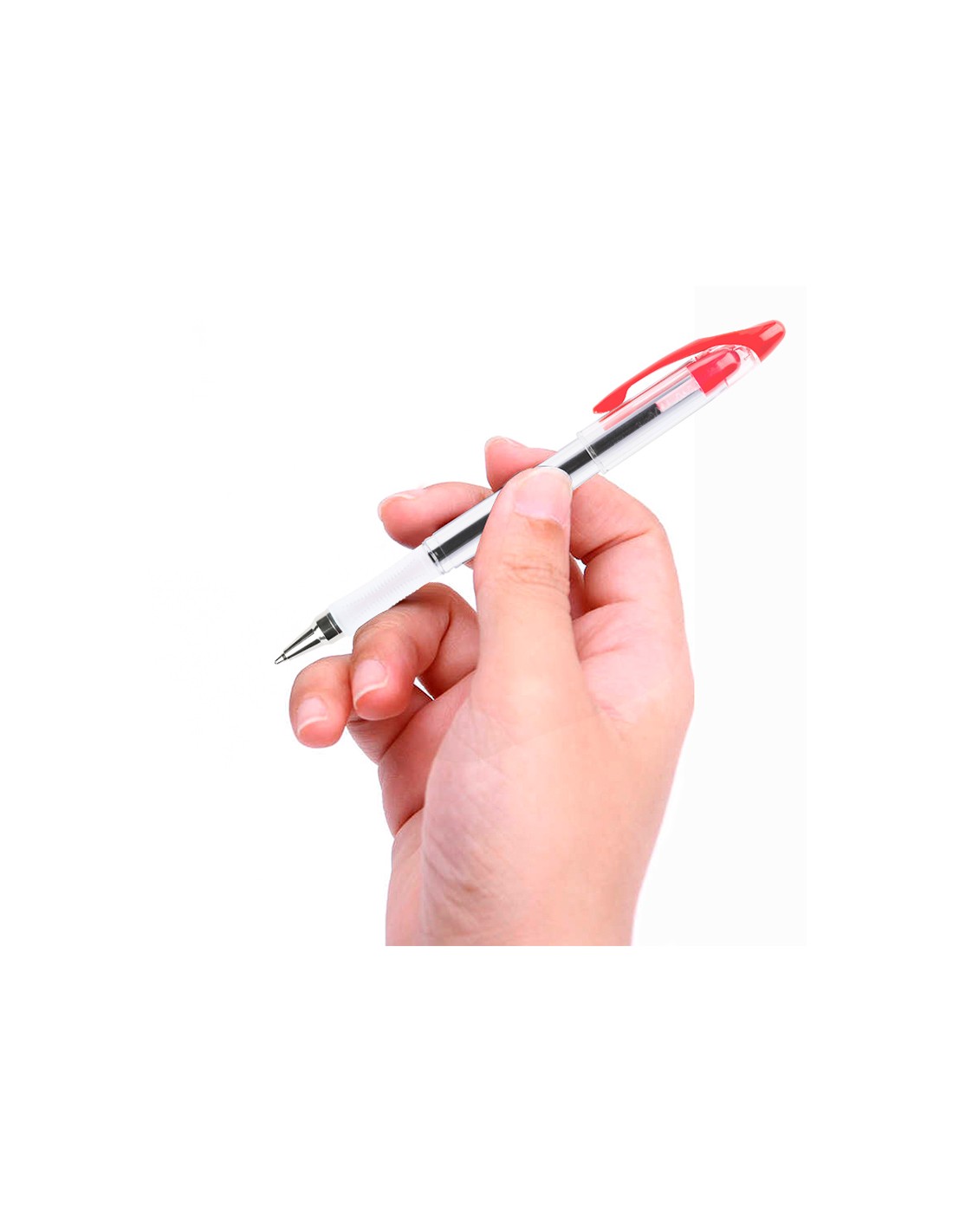Tinta a base de aceite. Sujeción de caucho para una mayor comodidad. Cuerpo transparente que permite ver el nivel de la tinta. Con capuchón del color de la tinta. Punta media de 1 mm. Trazo de 0,7 mm.