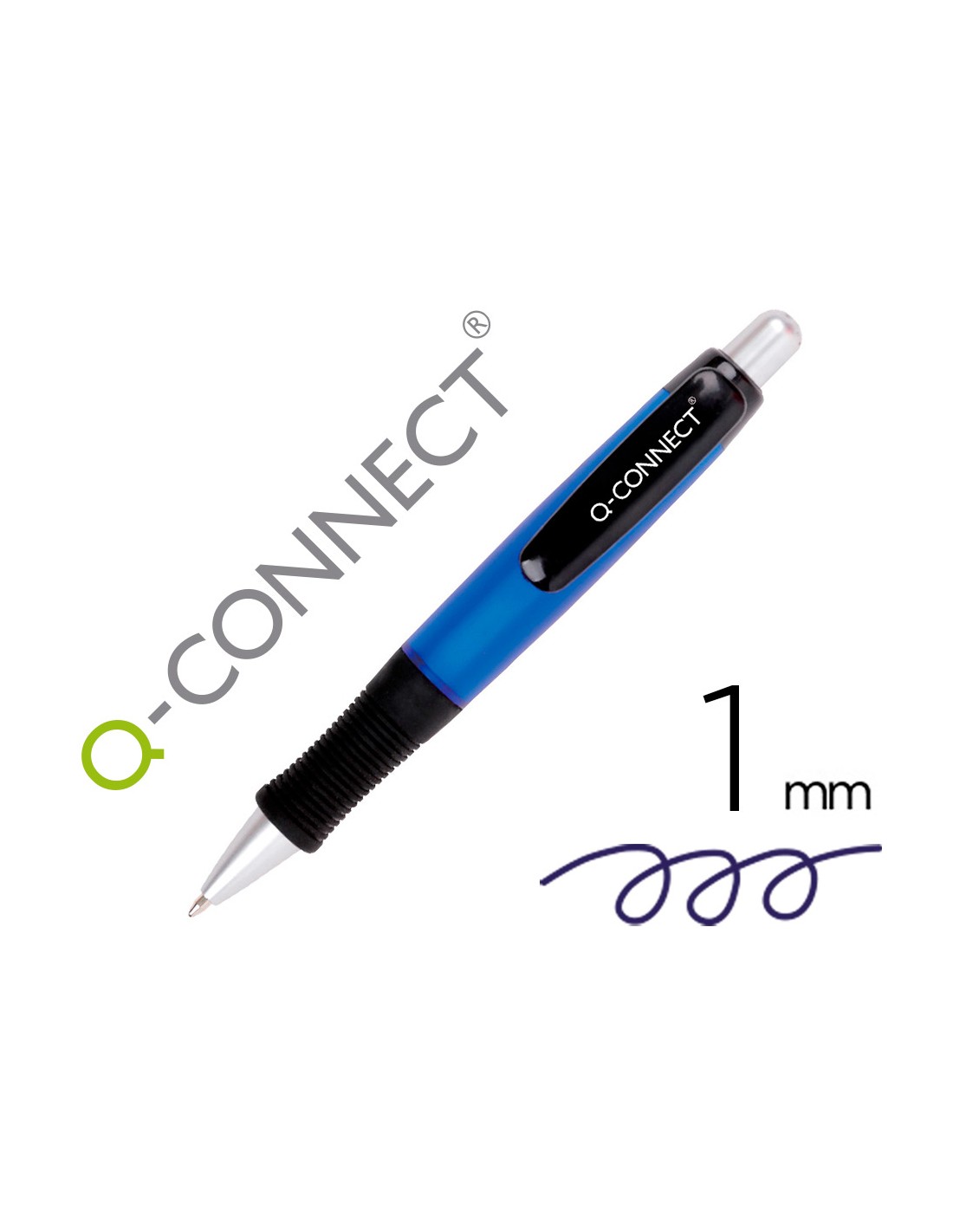 Boligrafo q-connect premium retractil con sujecion de caucho color azul punta 1 mm