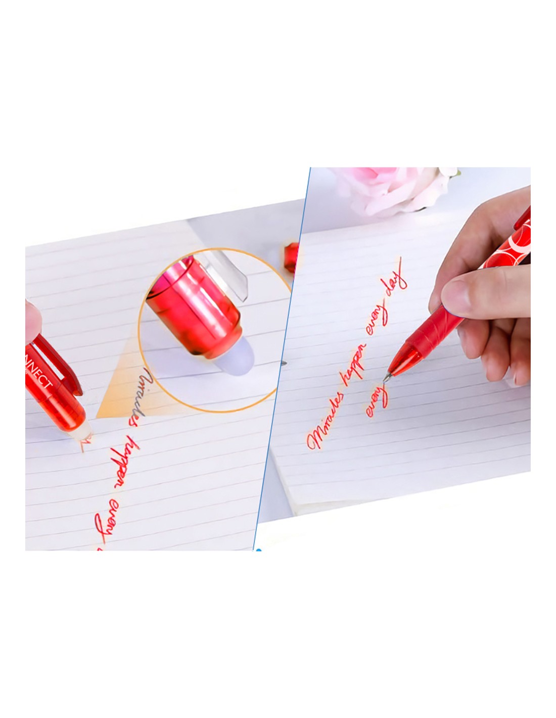 Elegante bolígrafo retráctil con tinta de gel que permite borrar y reescribir sin manchar o estropear los documentos. Borrando con la parte posterior especialmente diseñada, borra la tinta y reescribe inmediatamente. Cuerpo de color de la tinta. Punta de 1 mm. Trazo de 0,7mm.
