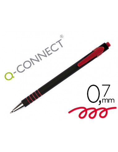 Boligrafo q-connect retractil con grip 0,7 mm color rojo